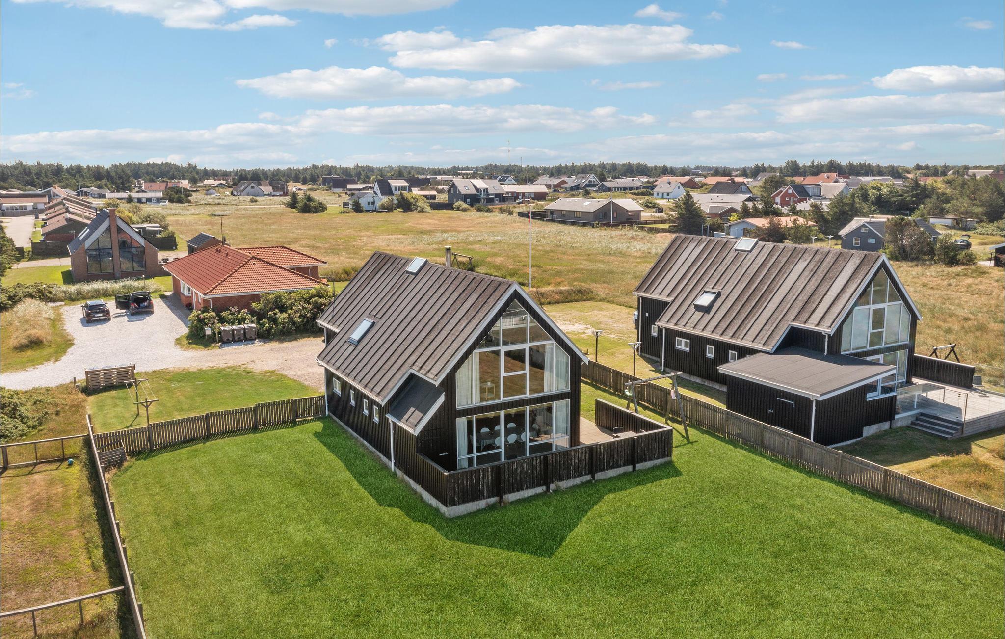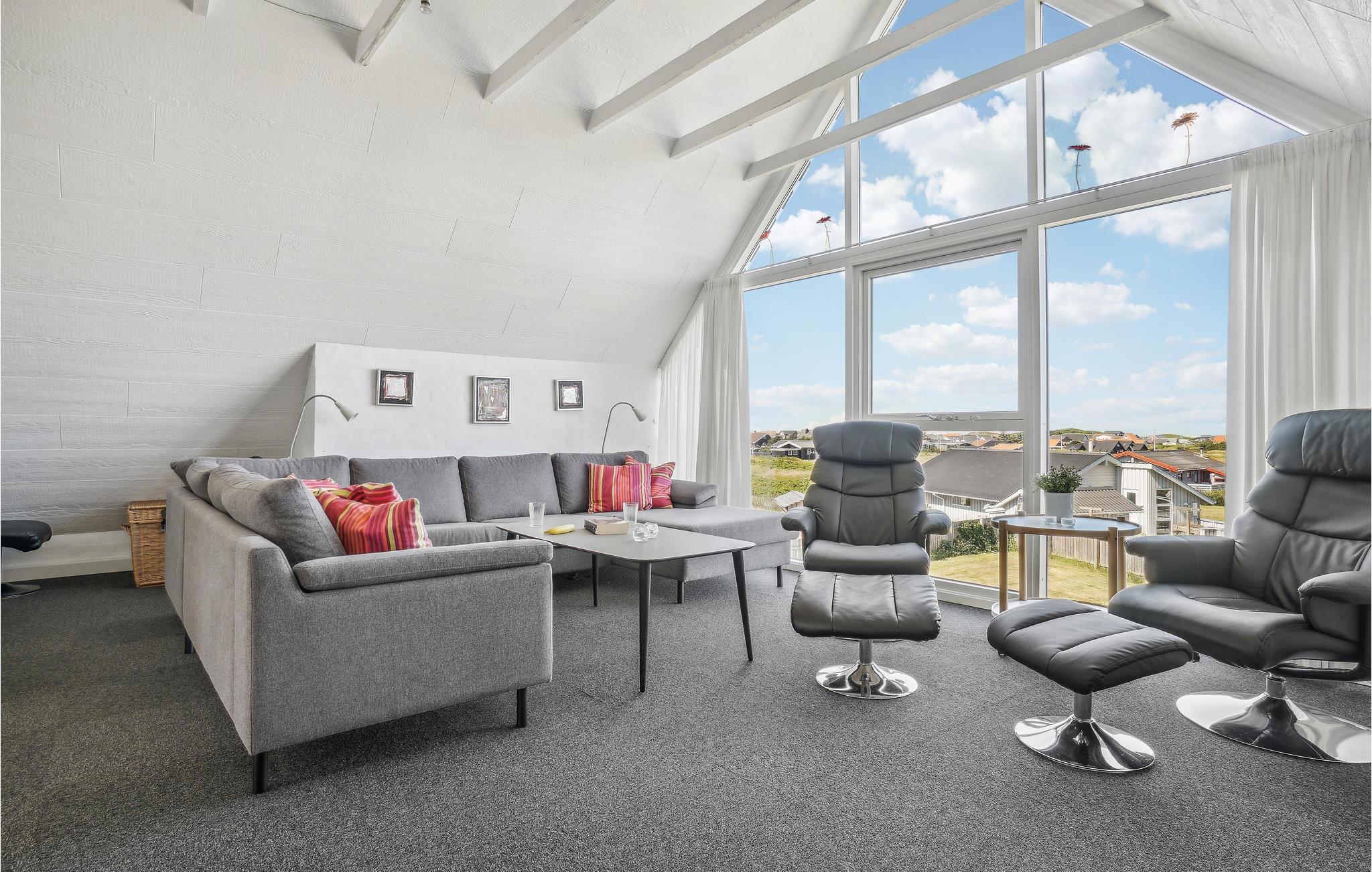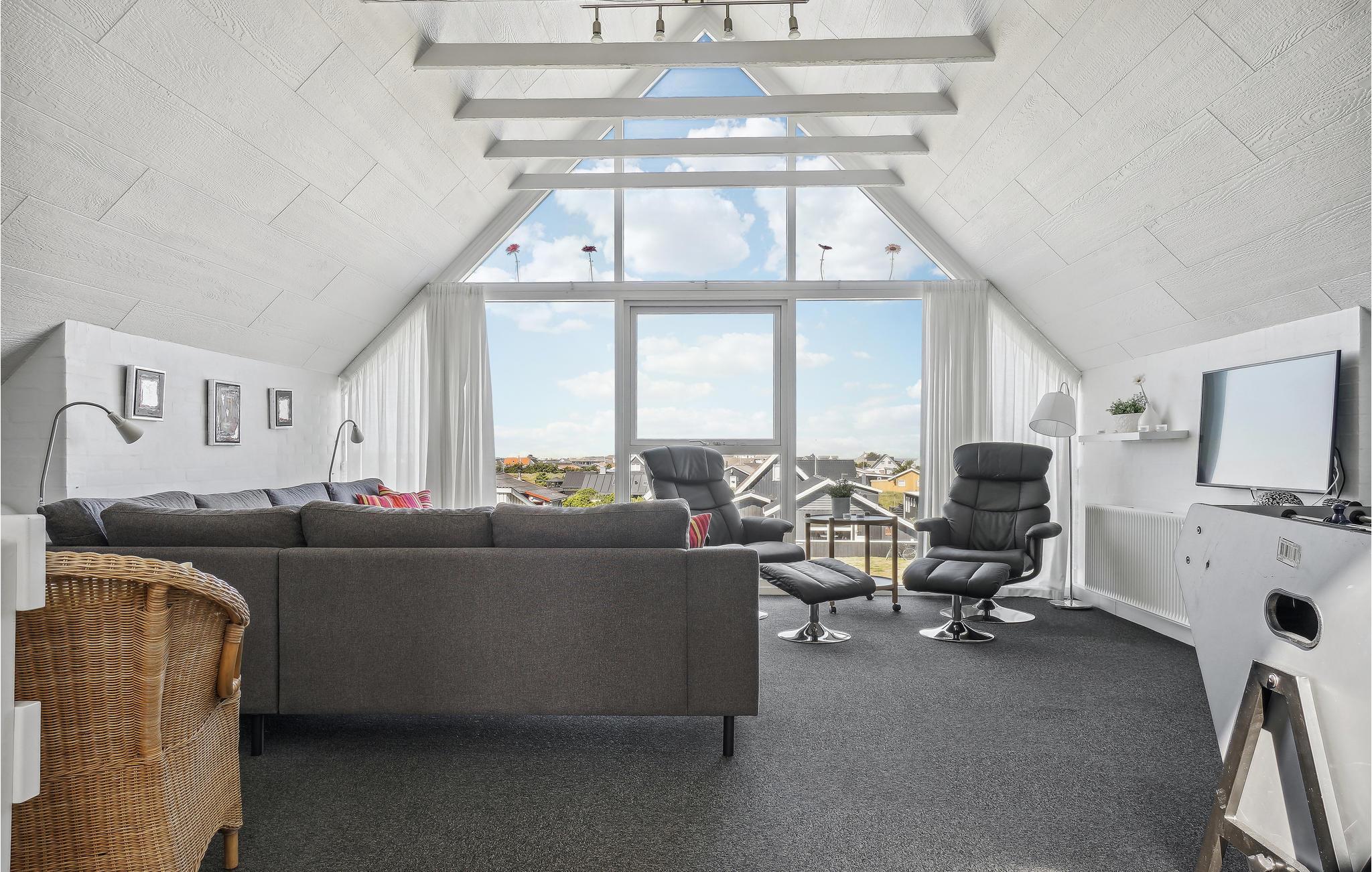 Lækkert sommerhus i to plan. På 1. salen findes et stort opholdsrum med den mest fantastiske udsigt over byen og Vesterhavet. En drømmebolig for den kræsne sommerhusliebhaver og et godt udgangspunkt for hygge og afslapning hele året rundt. Huset er meget rummeligt med store soveværelser, hvoraf det ene på førstesalen har adgang direkte ud til mindre balkon. I husets stuetage finder I endvidere et wellnessrum med stort spabad, sauna og motionsredskaber. Til huset hører en stor indhegnet grund, så det er også ideelt til både børnefamilier og/eller familier med husdyr, da de frit kan bevæge sig udenfor.