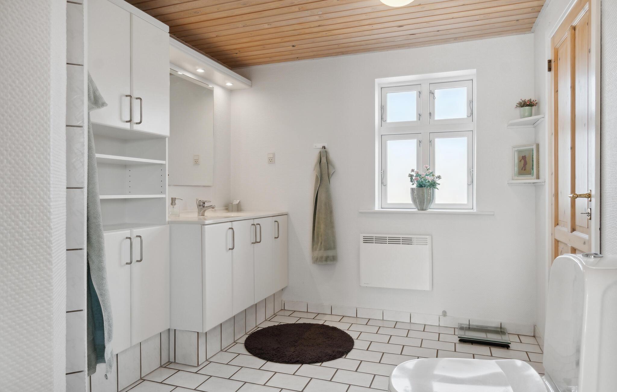 Dette rummelige feriehus byder på plads nok til hele familien og skaber det perfekte miljø for en afslappende ferie. Begynd dagene med morgenmad ved spisebordet i det smukke køkken, mens I sammen lægger planer for den kommende dag. Bagefter inviterer den hyggelige stue med sit indbydende sofahjørne til at blive hængende.