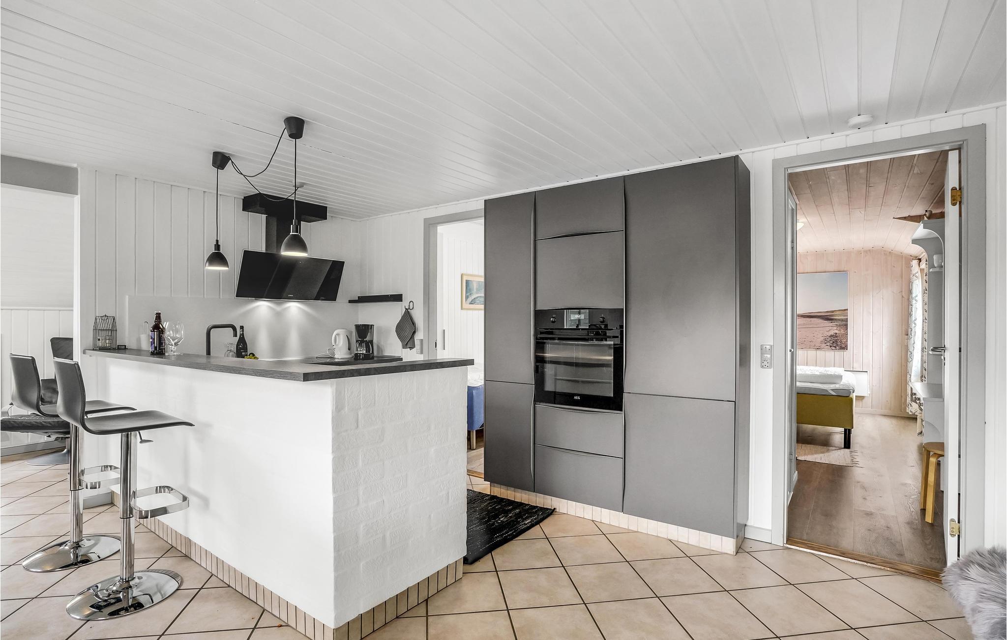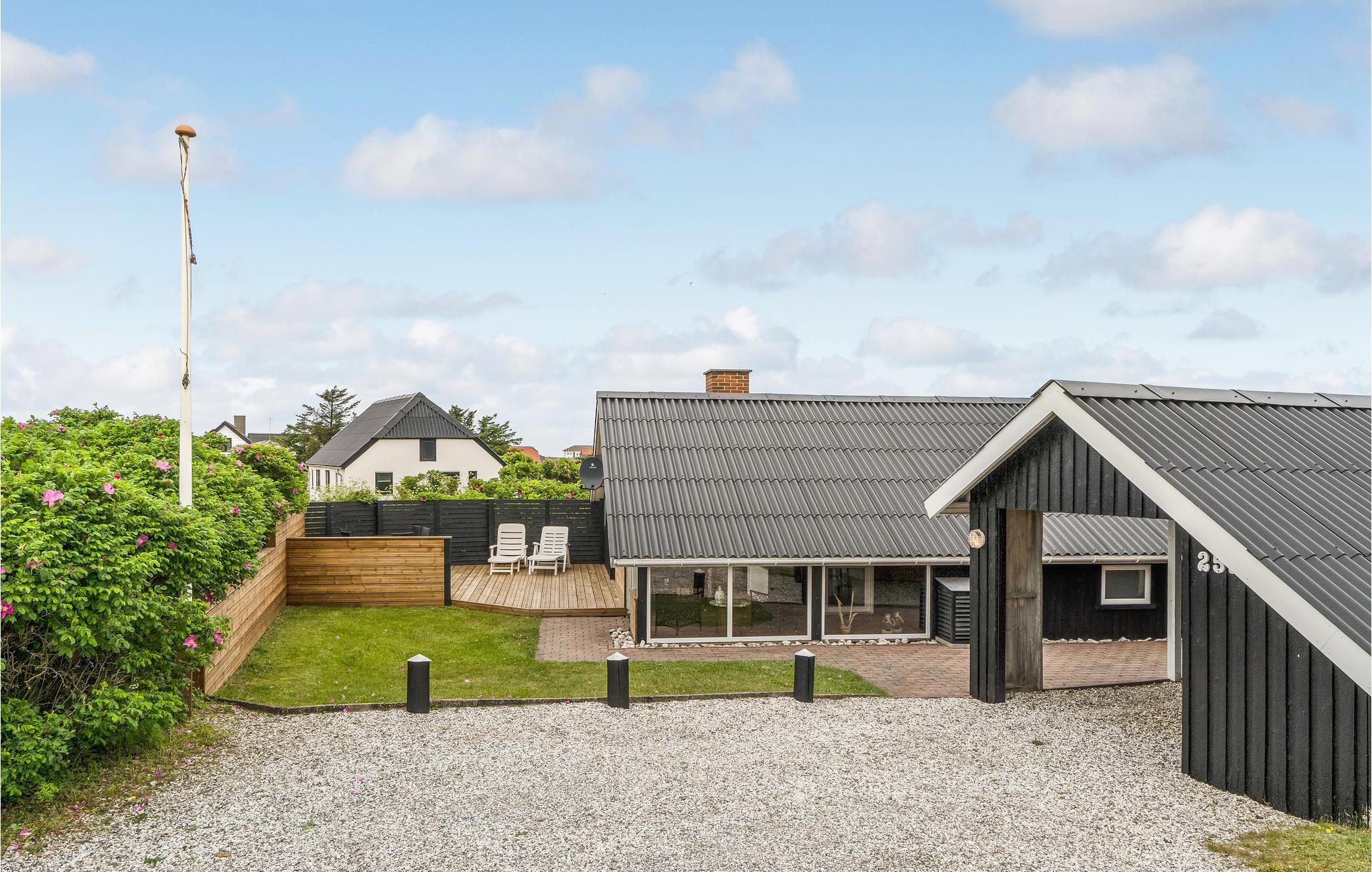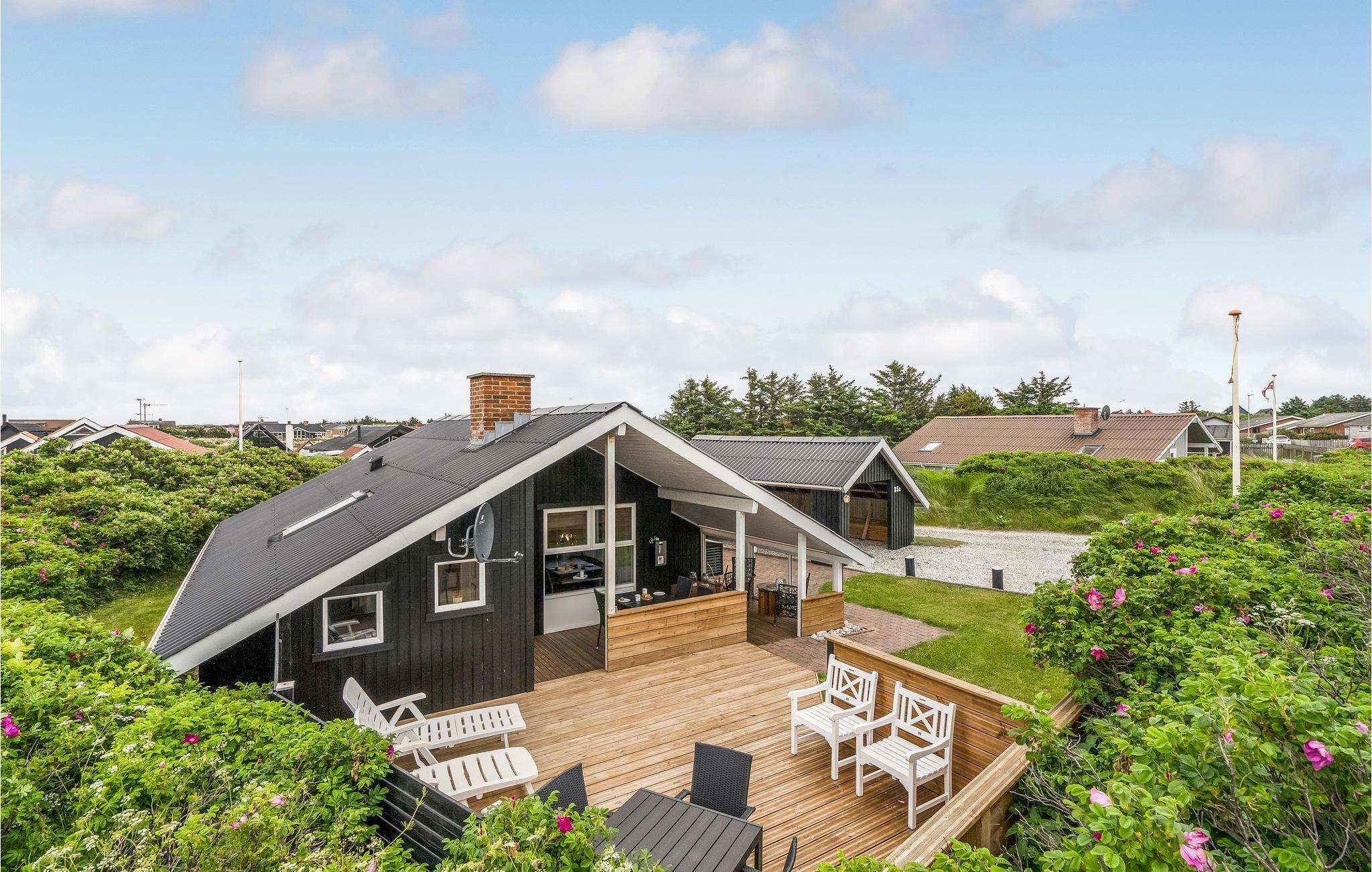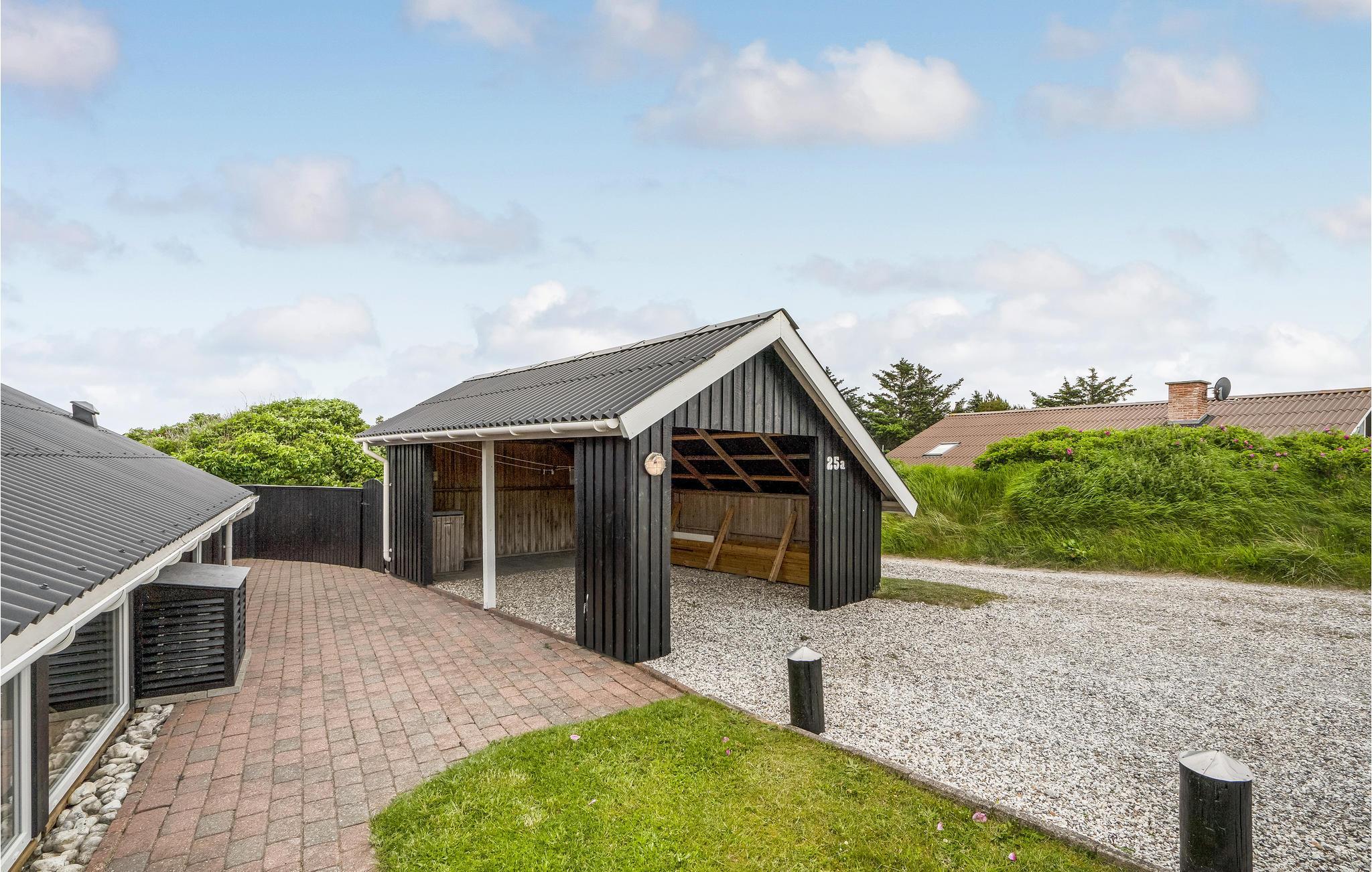 Hyggeligt feriehus i Vorupør med overdækket terrasse og brændeovn nær stranden og Cold Hawaii.