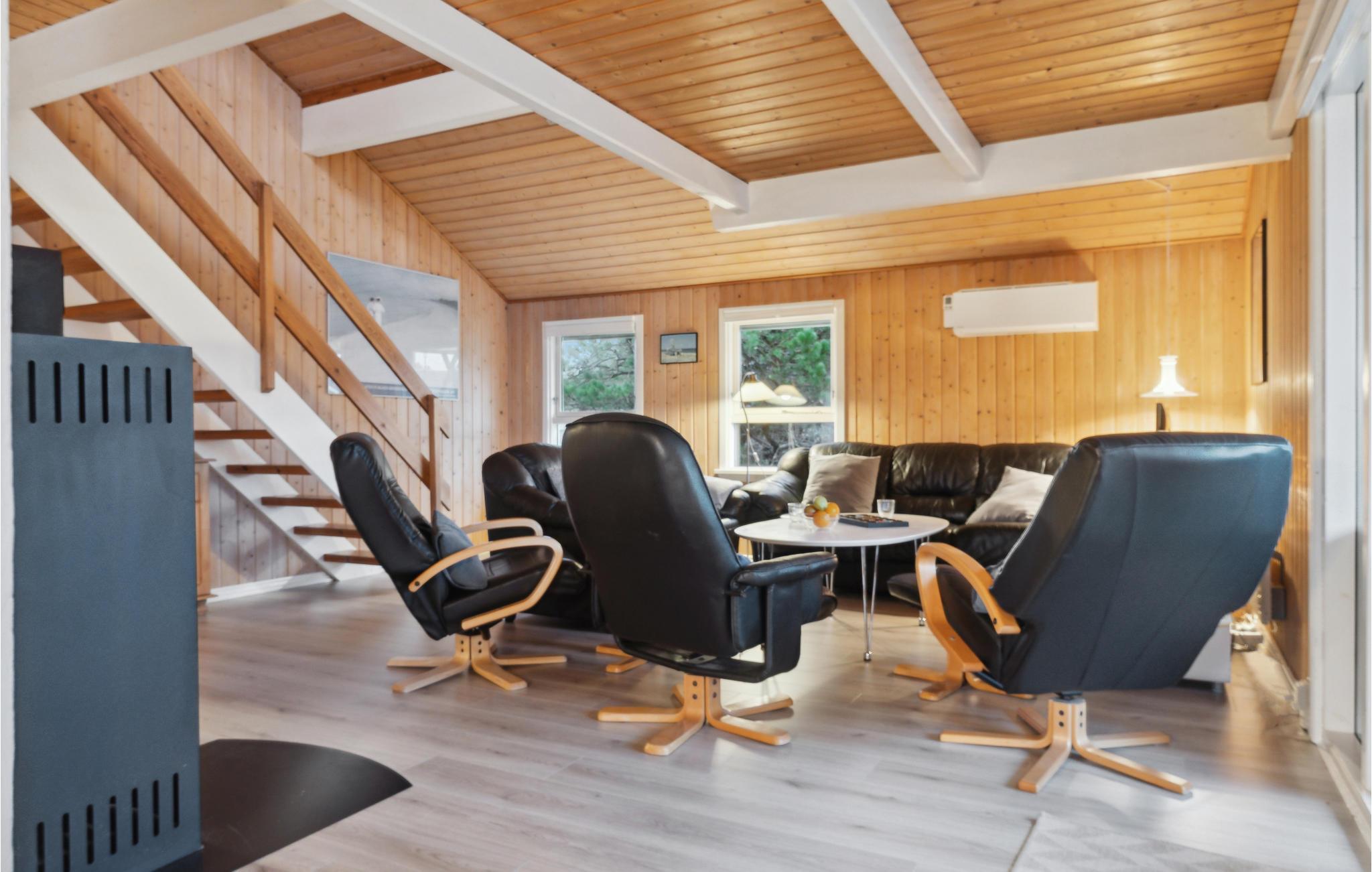 Her får I tre lyse soveværelser i stueetagen, samt et opholdsrum på førstesalen med 2 sovepladser.