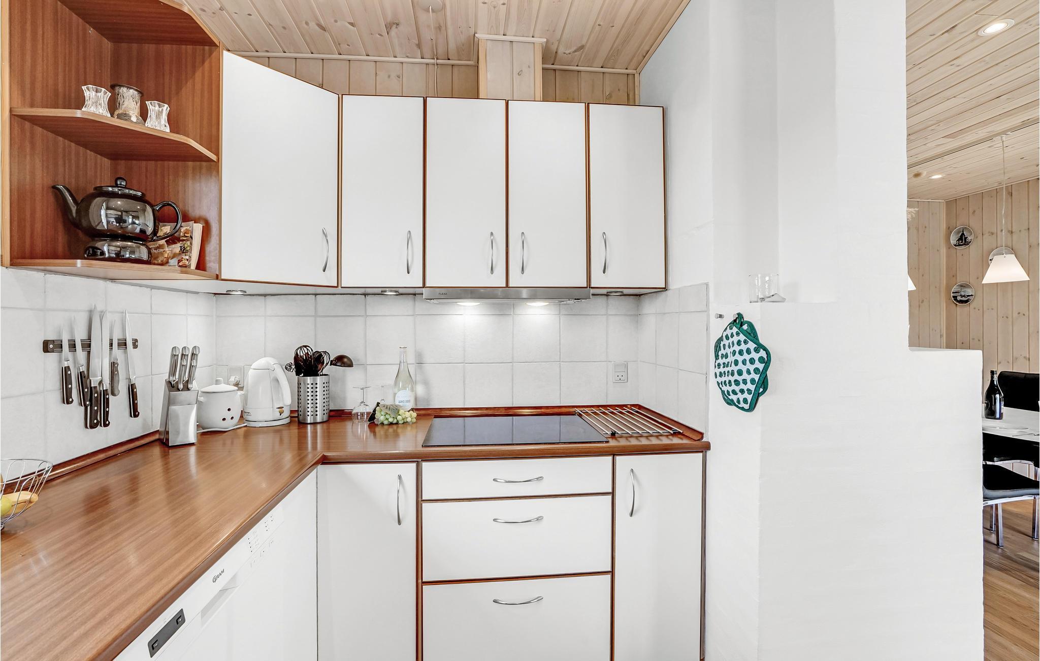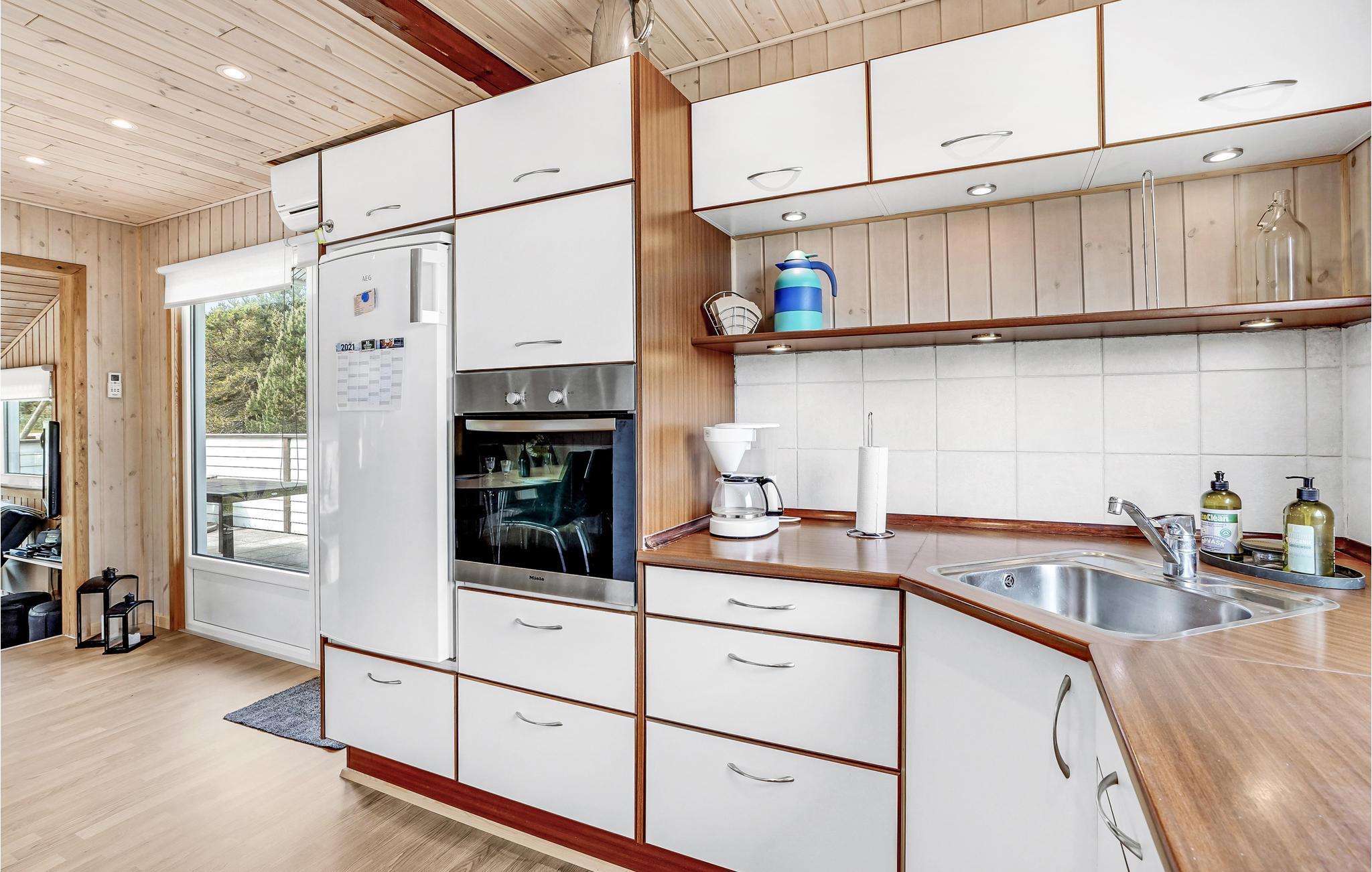Hyggeligt og velholdt feriehus af træ i attraktivt område i Vorupør. Det er nydeligt indrettet med lyse møbler og pænt køkken og bad. Huset har en hyggelig overdækket terrasse, hvor I kan hygge jer med en kold forfriskning eller en god bog. Kystlinjen ved Vorupør er velbesøgt at surfere og er i folkemunde kendt som Cold Hawaii pga. vind-/vandforholdene, som minder meget om Hawaii. Afstand bademulighed: 1,0 km. Afstand indkøb: 500 m. Afstand restaurant: 600 m.