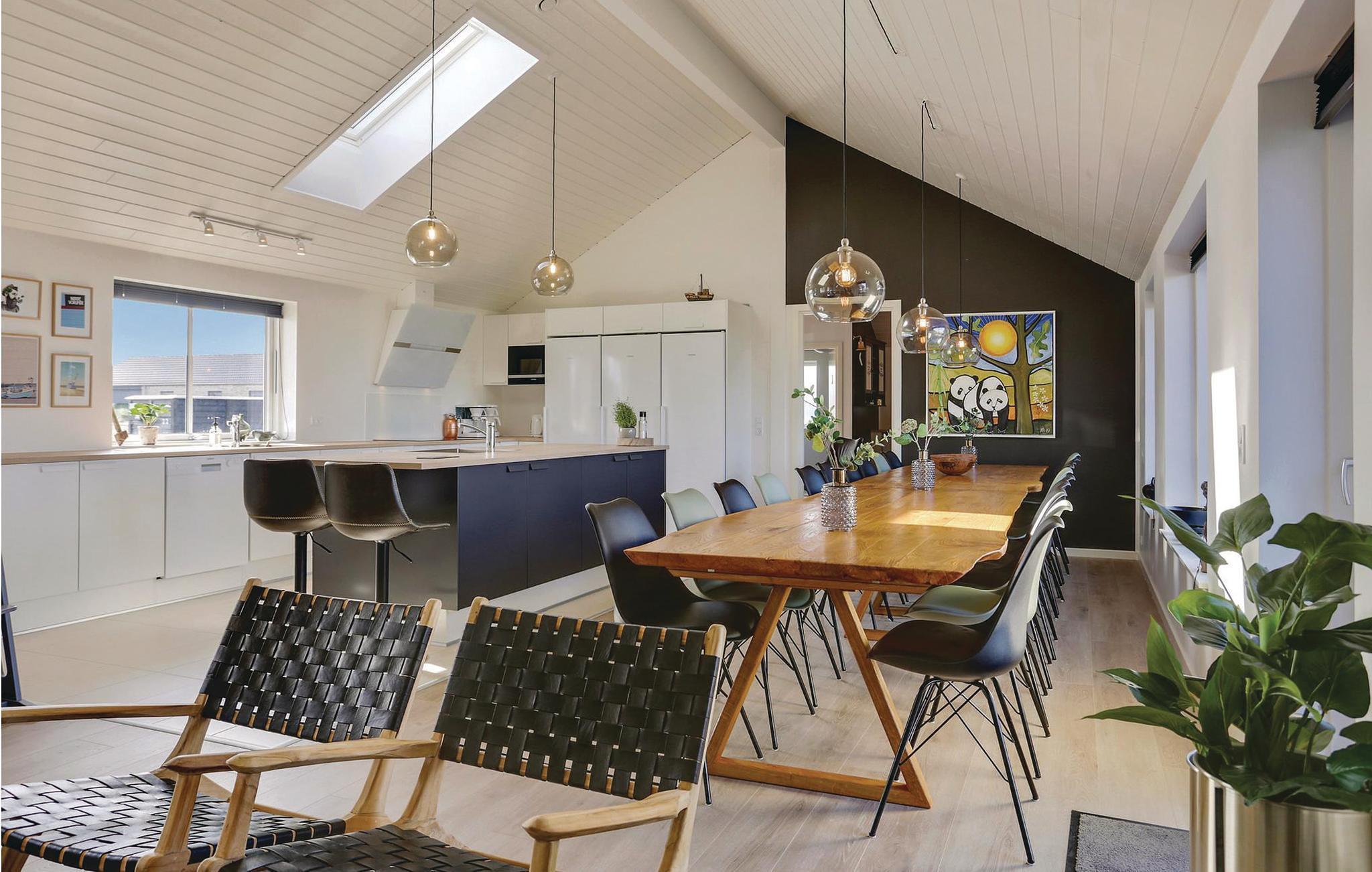 Huset består af 8 soveværelser, hems med 2 sovepladser samt 4 badeværelser, så der er rig mulighed for at I kan være flere familier sammen, og samtidig bevare privatlivet. Derudover får I en stor, lys opholdsstue med plads til alle ved det lange, smukke plankebord i spiseområdet.