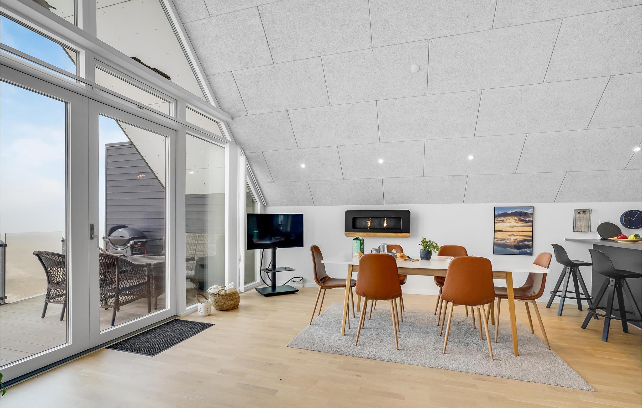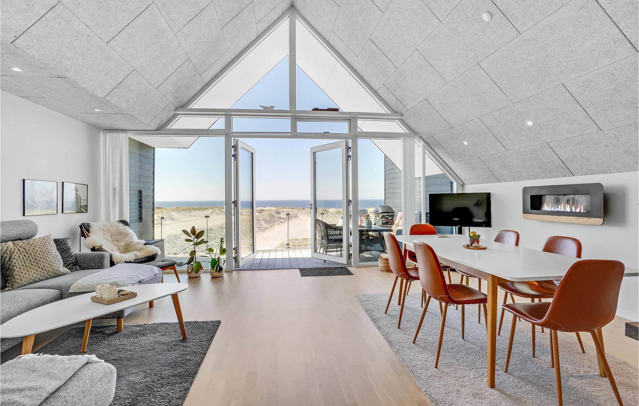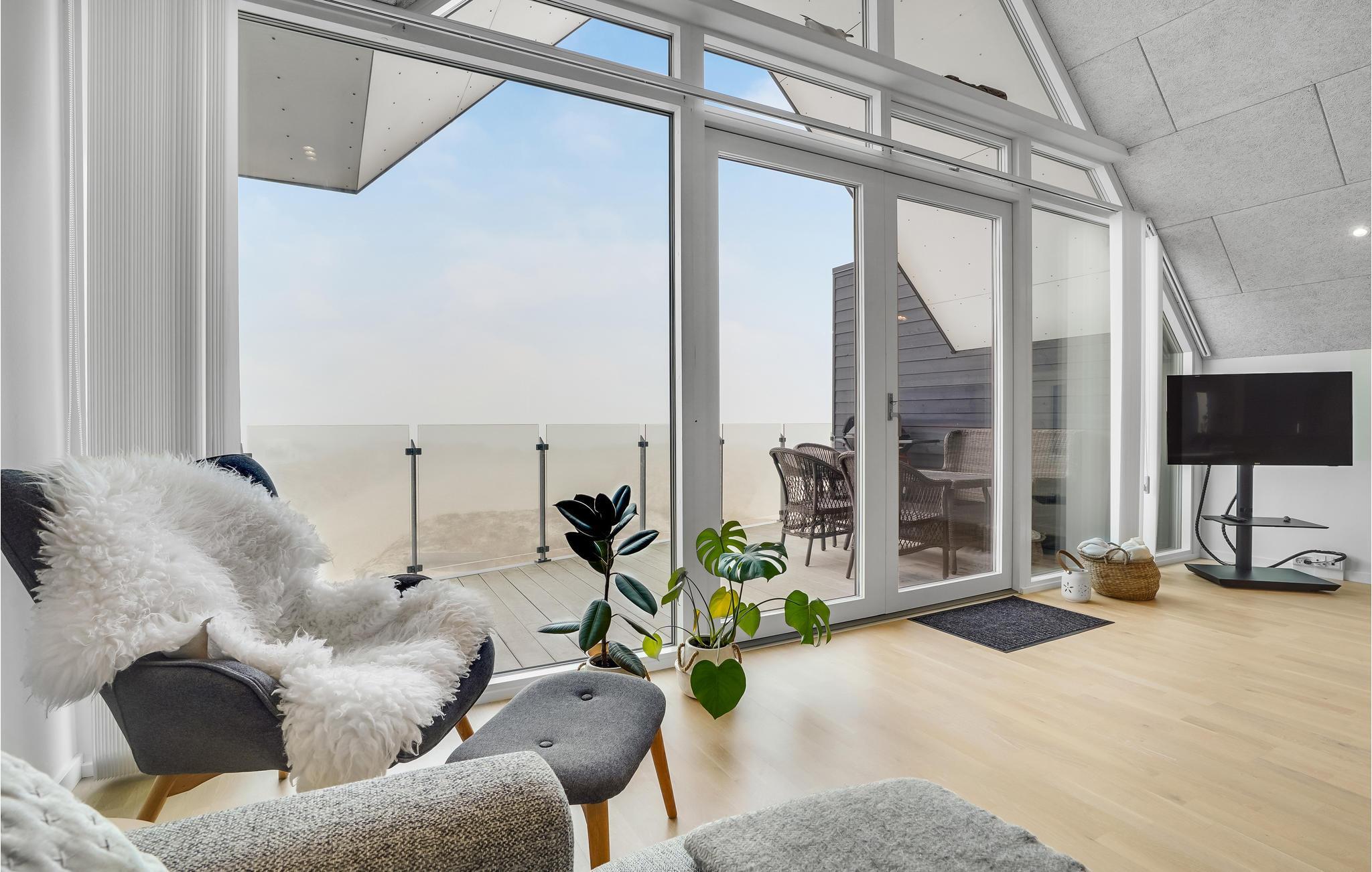 Vorupør har en helt særlig atmosfære, som ikke mindst skyldes tilknytningen til Vesterhavet og de gunstige vindforhold for surfere. Her kan I flytte ind i denne hyggelige lejlighed med en privilegeret beliggenhed på 1. sal. Der venter jer en stilfuld bolig med lækre, elegante faciliteter. Lejlighedens store force er udsigten, som giver jer følelsen af at kunne løbe direkte ud i havet. Klitterne, havet og himlens skiftende farver - her er et syn, som I aldrig bliver trætte af. På de køligere årstider sørger biopejsen for både lune og hyggelige aftener.