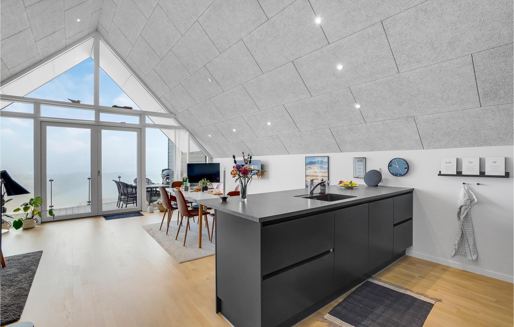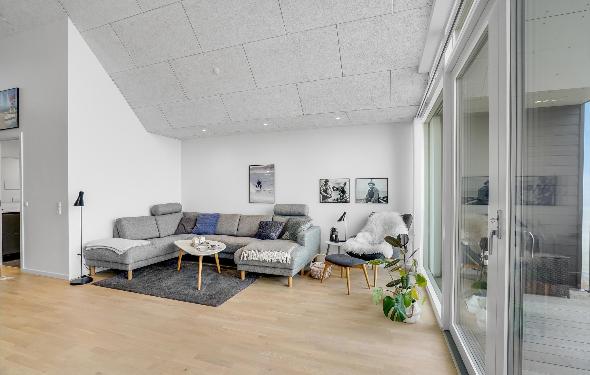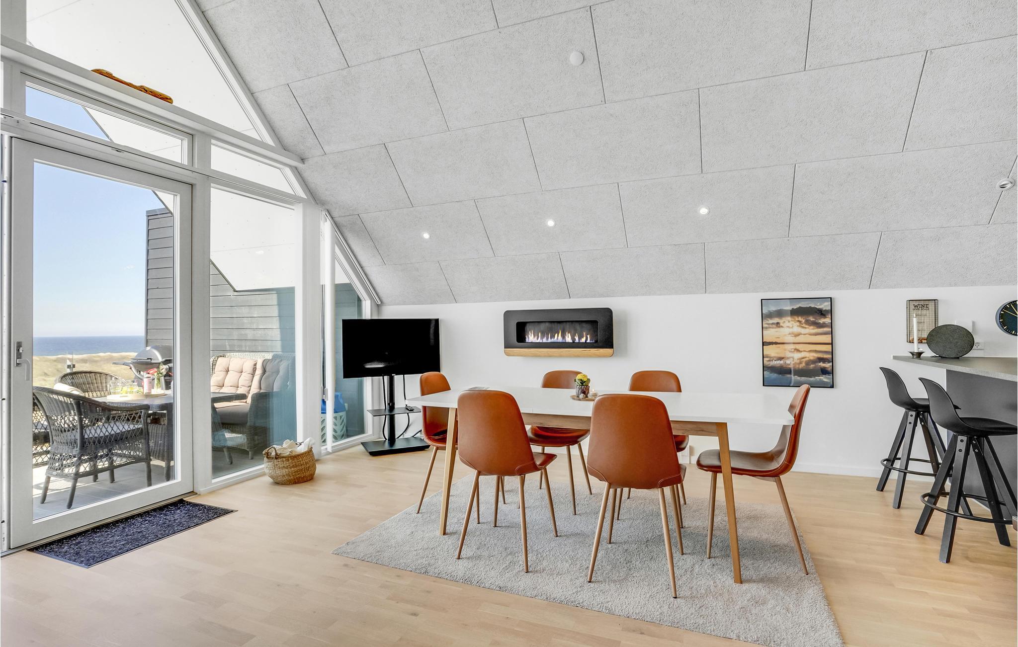 Vorupør har en helt særlig atmosfære, som ikke mindst skyldes tilknytningen til Vesterhavet og de gunstige vindforhold for surfere. Her kan I flytte ind i denne hyggelige lejlighed med en privilegeret beliggenhed på 1. sal. Der venter jer en stilfuld bolig med lækre, elegante faciliteter. Lejlighedens store force er udsigten, som giver jer følelsen af at kunne løbe direkte ud i havet. Klitterne, havet og himlens skiftende farver - her er et syn, som I aldrig bliver trætte af. På de køligere årstider sørger biopejsen for både lune og hyggelige aftener.