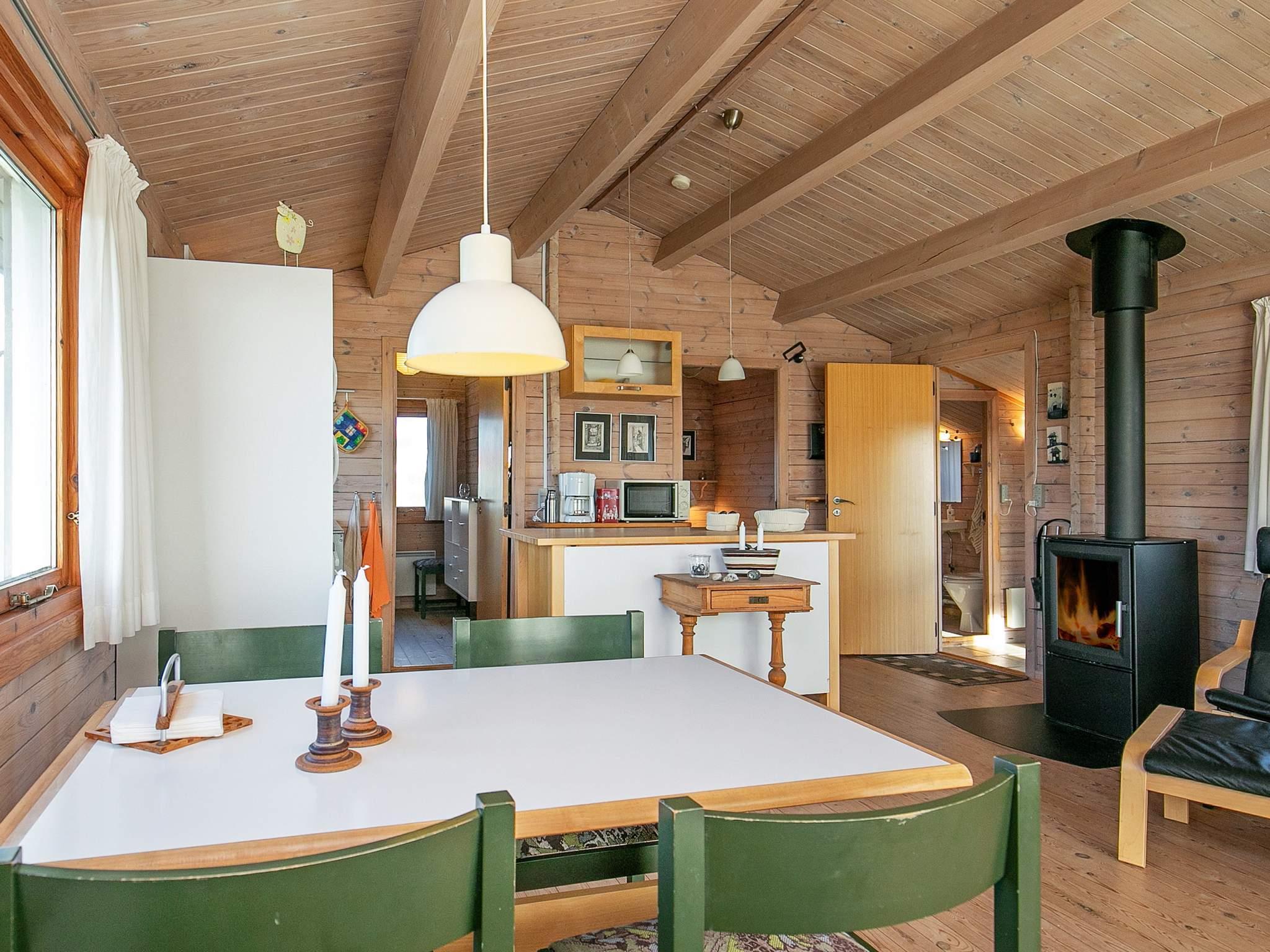 1 Opholdsstue: Brændeovn, stereoanlæg med cd, dvd-afspiller, Chromecast, tv, høj stol