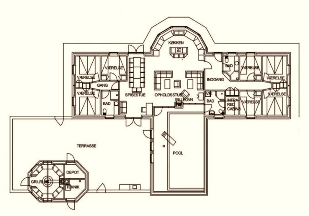 7 Soveværelser: (1DS)+(1DS)+(1DS)+(1DS)+(4K)+(4K)+(4K)