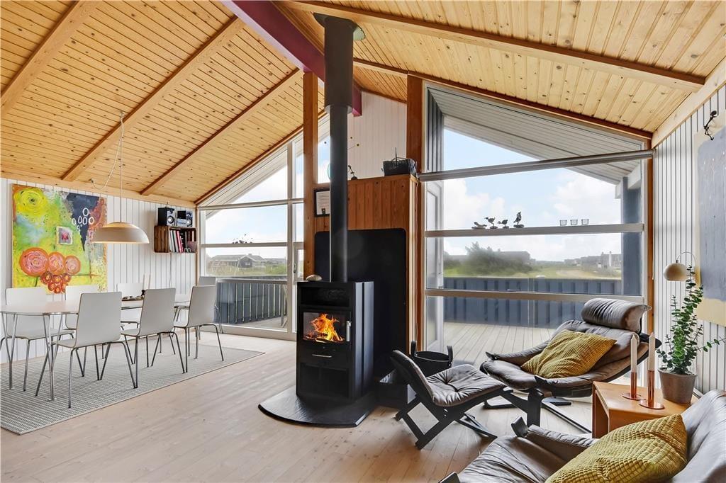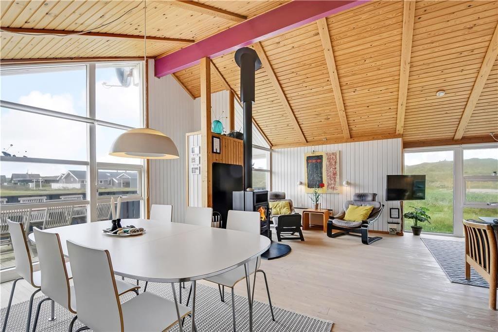 Det hyggelige sommerhus på Fourmivej 59 byder på ægte sommerhuscharme med sine lyse trævægge, trælofter og en indbydende atmosfære, hvor du hurtigt vil føle dig hjemme. I husets hjerte finder du stue, spiseplads og køkken samlet i ét åbent rum – perfekt til samvær, måltider og lange hyggelige aftener foran brændeovnens knitrende ild. Når du trænger til ekstra forkælelse, kan du slappe af i husets indendørs spa eller nyde varmen i saunaen efter en frisk tur langs stranden. Her får du den perfekte base for en ferie med masser af hygge, ro og mulighed for at lade batterierne op.