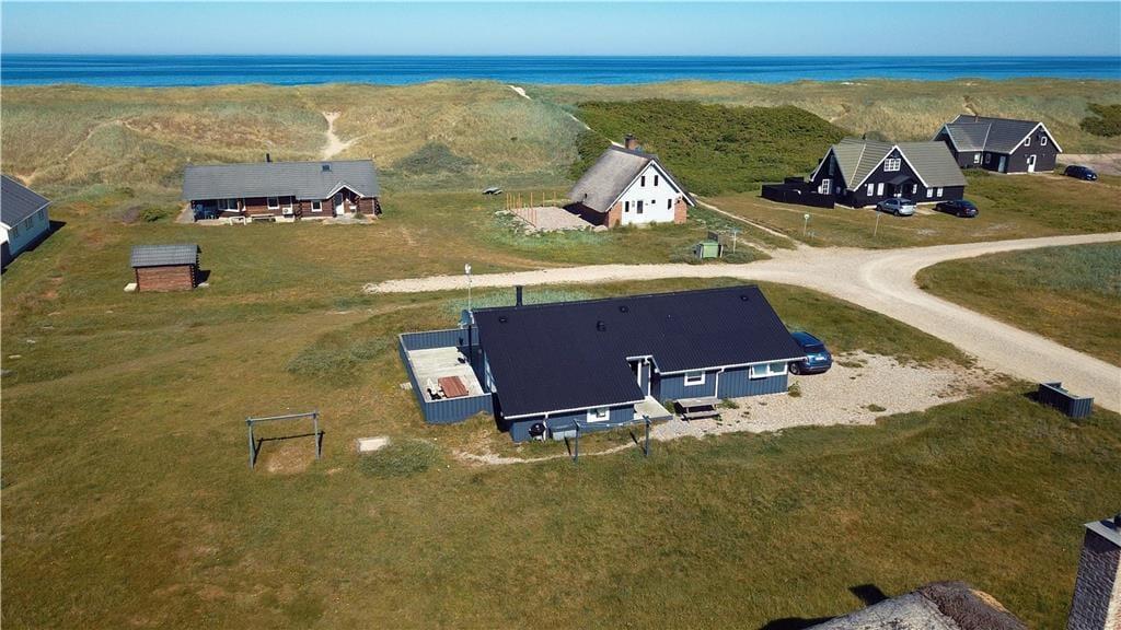 På den 1.400 m² store grund er der masser af plads til at nyde livet under åben himmel. Den 40 m² store terrasse giver dig både solrige kroge og læfyldt hjørner, hvor du kan læne dig tilbage med en god bog eller samles til måltider i det fri. Børnene vil elske haven, hvor der både er gyngestativ og sandkasse, og selvfølgelig er familiens hund også hjerteligt velkommen. Den store, åbne grund inviterer til boldspil, leg og afslappet udeliv, mens du kan lade dig forføre af havets brusen i baggrunden. Når solen går ned, er det oplagt at tage en kort spadseretur til stranden og nyde den spektakulære solnedgang over Vesterhavet.
