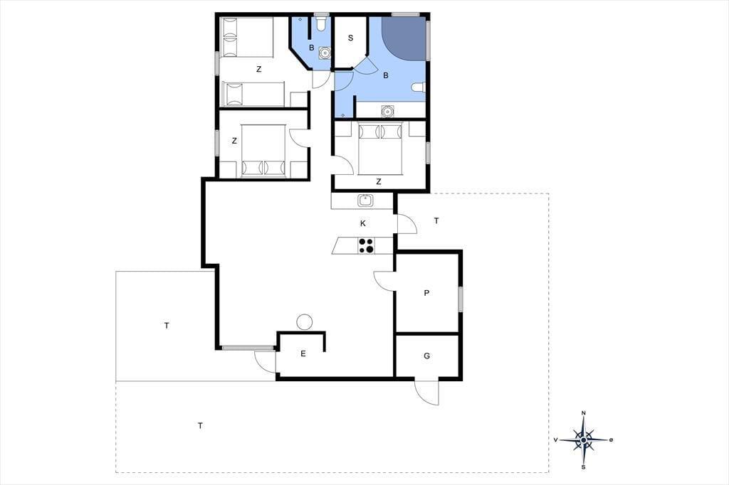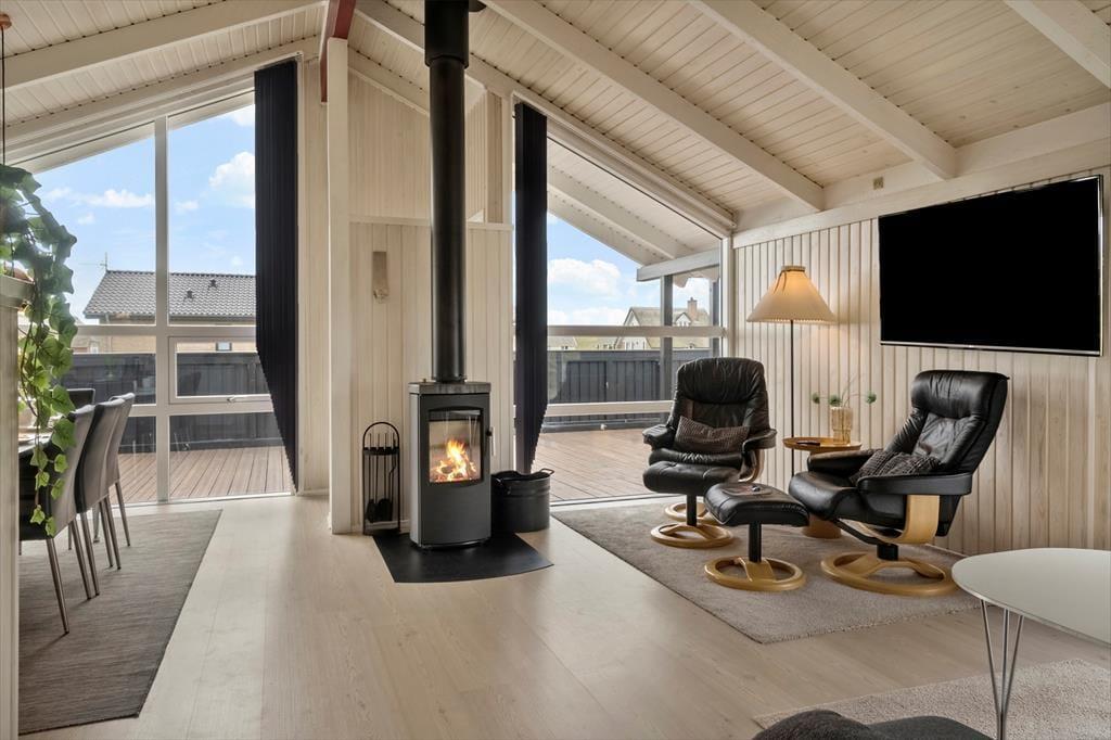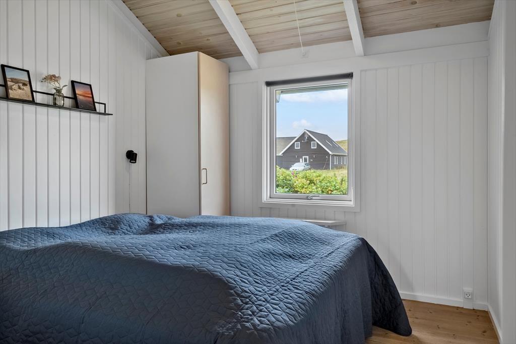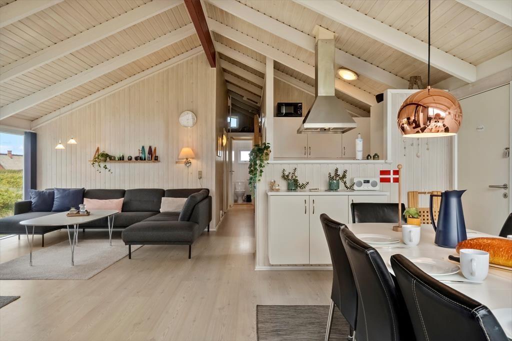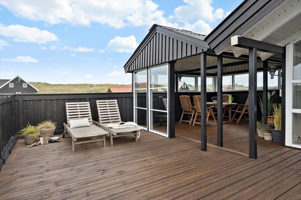 Den store terrasse, som delvist er overdækket, gør det muligt at nyde udelivet uanset vejret. Her kan du drikke morgenkaffen i solen, dække op til frokost i læ eller grille på de lange, lyse sommeraftener. I haven finder børnene hurtigt hen til gyngen og sandkassen, mens de voksne måske finder en rolig krog med udsigt til himmel og klitter. Duften af hav minder dig hele tiden om, hvor tæt du er på stranden – og skulle du få lyst til en aftendukkert eller en tur langs vandkanten, er der blot 100 meter at gå.