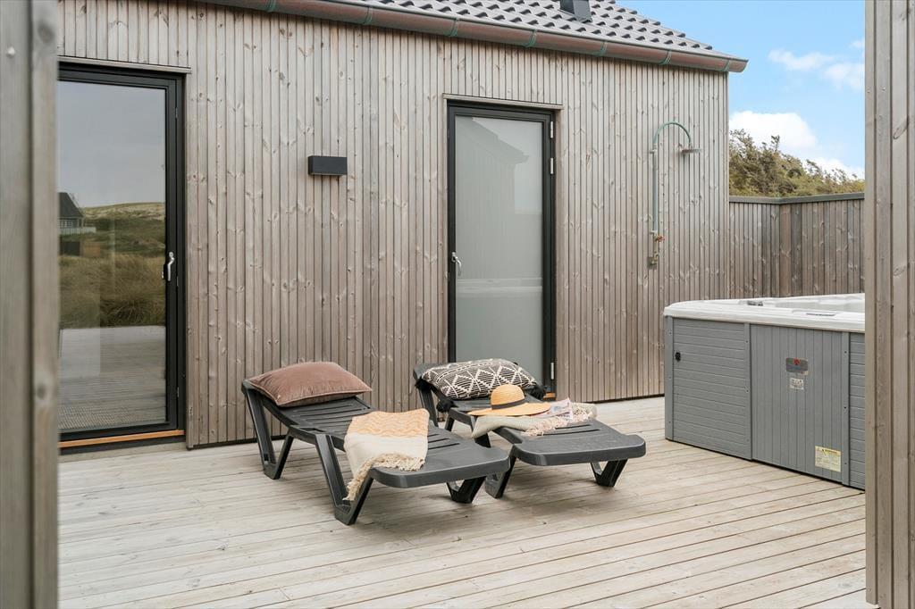 Det skønne udeliv får virkelig gode betingelser på Hvilehjemsvej 23. Den overdækkede terrasse er et oplagt sted at starte dagen med en kop kaffe, mens morgensolen varmer dig blidt og lydene fra havet anes i baggrunden. Når dagens tempo sætter ind, kan du nyde udespaen under åben himmel – måske efterfulgt af en tur i saunaen og et frisk skyl under udebruseren. Alt sammen med Vesterhavets brusen som bagtæppe. Haven indbyder til afslapning og leg, og det rolige sommerhusområde gør det nemt at finde en fredelig krog med læ, hvor du kan læne dig tilbage med en bog eller bare nyde duften af salt og marehalm. Med så kort afstand til stranden er det også fristende at tage flere ture i løbet af dagen – og komme hjem igen til en varm spa under stjernerne.