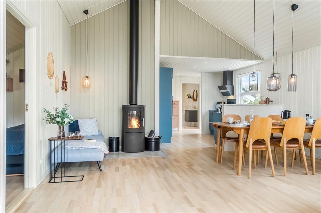 Det første, du bemærker, er den lyse og hyggelige indretning, der får huset til at føles som en ægte ferieoase. Brændeovnen spreder varme og stemning på kølige aftener, og den åbne stue med bløde møbler og store vinduer giver et naturligt samlingspunkt for familien. Det renoverede interiør skaber en behagelig kontrast mellem moderne komfort og den klassiske sommerhuscharme – her er det let at falde til. Når det er tid til forkælelse, venter husets spaafdeling med både indendørs spabad og sauna. Her kan du lade dagens oplevelser smelte væk i damp og varme, mens du lytter til lyden af vinden i træerne udenfor. Det er ferie på den helt rigtige måde.