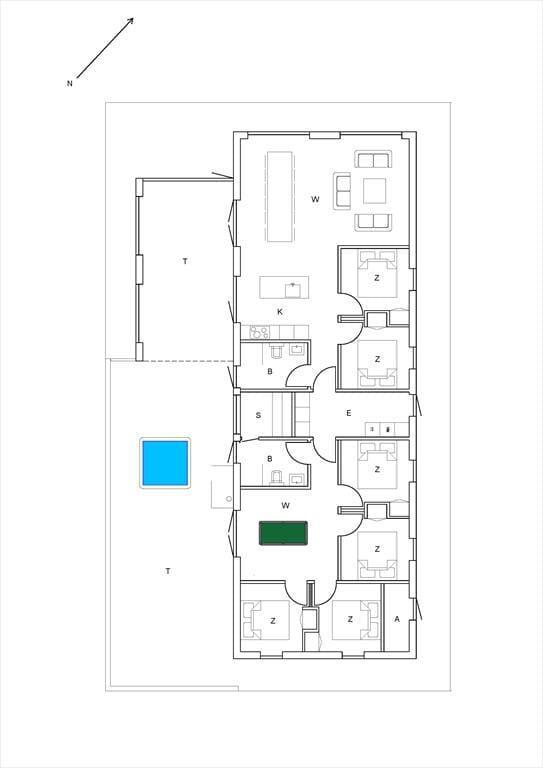 Indretningen er lys, stilfuld og gennemtænkt, præcis som man forventer af et kvalitetssommerhus ved havet. Her kan du samle hele familien eller tage af sted med gode venner, for huset er oplagt til en ferie, hvor mange kan være sammen. Køkken og stue er forbundet i en stor, indbydende opholdsafdeling, hvor samtaler og fælles måltider falder naturligt. Når der er brug for lidt ekstra aktivitet, venter husets aktivitetsrum, hvor både børn og voksne kan dyste i spil og få timerne til at flyve afsted. Efter en lang dag ved stranden kan I glæde jer til afslapning i saunaen, der giver ekstra velvære på de kølige dage.