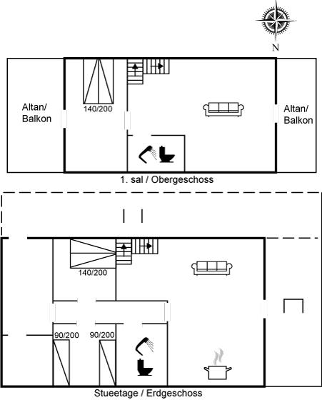 Der er i alt 3 soveværelser. Sovepladserne fordeler sig på: 4 sovepladser i dobbeltsenge. 2 sovepladser i enkeltsenge.