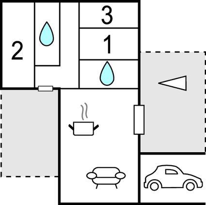 Badeværelse 3m2 (nr. 2) - WC. Varmt og koldt vand. Bruser