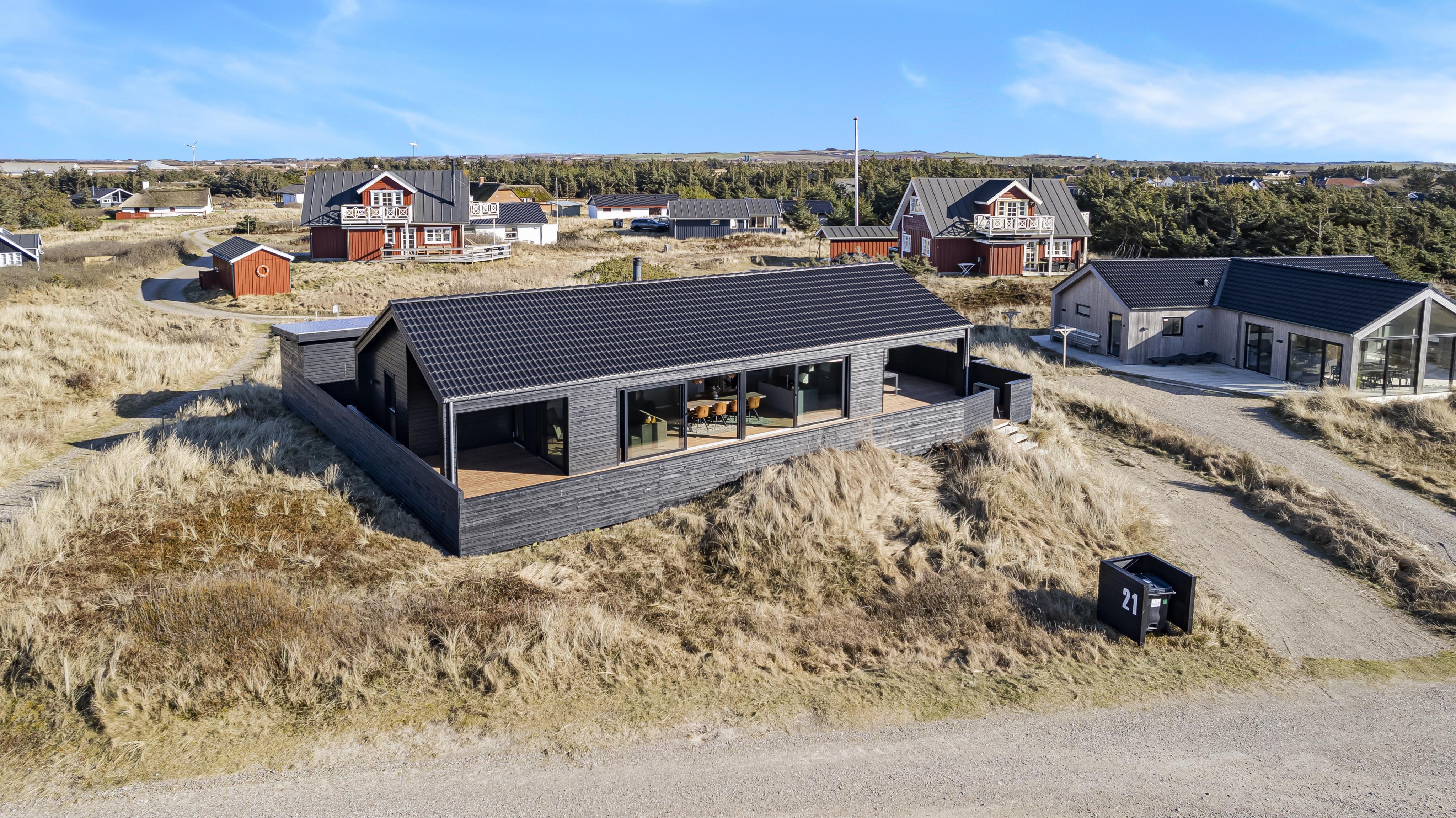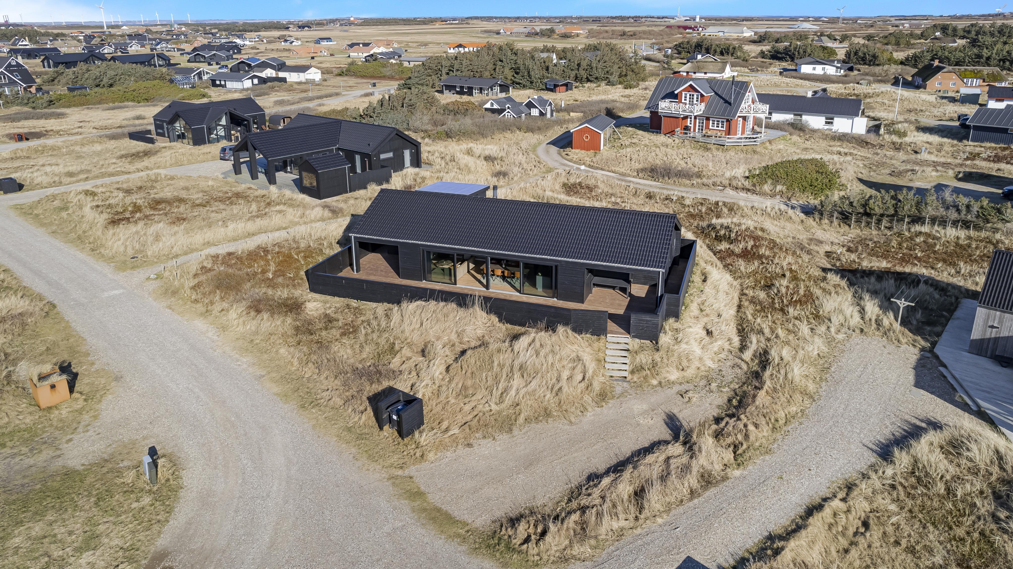 Velbeliggende feriehus med fantastisk udsigt mod klitterne og kort afstand til det brusende Vesterhav. Nybygget feriehus hvor der er tænkt på alt, detaljerne ved dette feriehus er ikke til at overse, og det hele går op i en helhed, der danner rammerne om den perfekte ferie. Her er alt hvad man har brug for. Stor lukket terrasse med loungeområde, panoramaudsigt mod klitterne, der virkelig er betagende og unik.