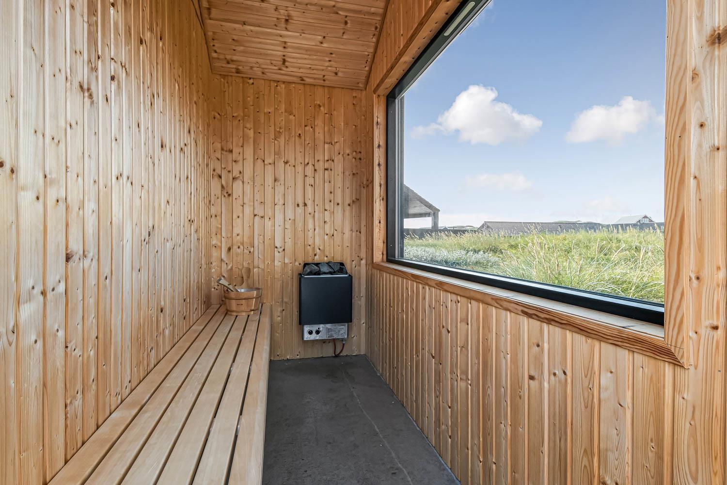Feriehuset er beliggende på en 1.200 m2 stor klitgrund kun 150 meter fra Vesterhavet. Dejligt terrasseanlæg med havemøbler, solvogne og grill. Der er både åben og overdækket terrasse, og der mulighed for en tur i den udendørs træopvarmede vildmarksspa eller i den udendørs sauna året rundt. En unik oplevelse som er ren terapi for sjæl og krop. Nyd den helt unikke mulighed det er at sidde på terrassen samtidig med, at man kan høre Vesterhavet lige på den anden side af klitterne. Der er også rig mulighed for at nyde solen, hinanden eller en god grillaften. Gå en tur med hunden i det rolige feriehusområde. Hen over de høje klitter og straks derefter åbenbarer Vesterhavet sig. Hver dag byder Vesterhavet på nye maleriske oplevelse, der inviterer til en frisk gå- eller løbetur. Eller hvad med en lille tur på ca. 10 - 15 min op til områdets lille købmand, som i sæsonen har åbent og byder på frisk morgenbrød, og hvor de daglige indkøb også kan klares. Så hvad enten du er til aktiv ferie eller total afslapning danner dette flotte feriehus den perfekte ramme både hvad angår hus, beliggenhed og omgivelser. Inden for kort køreafstand nås både den aktive handelsby i Lemvig med flere specialbutikker eller den unikke fiskerby Thyborøn, som udover den aktive fiskerihavn også byder på badestrand og op til flere aktivitetstilbud, som alle er et besøg værd.