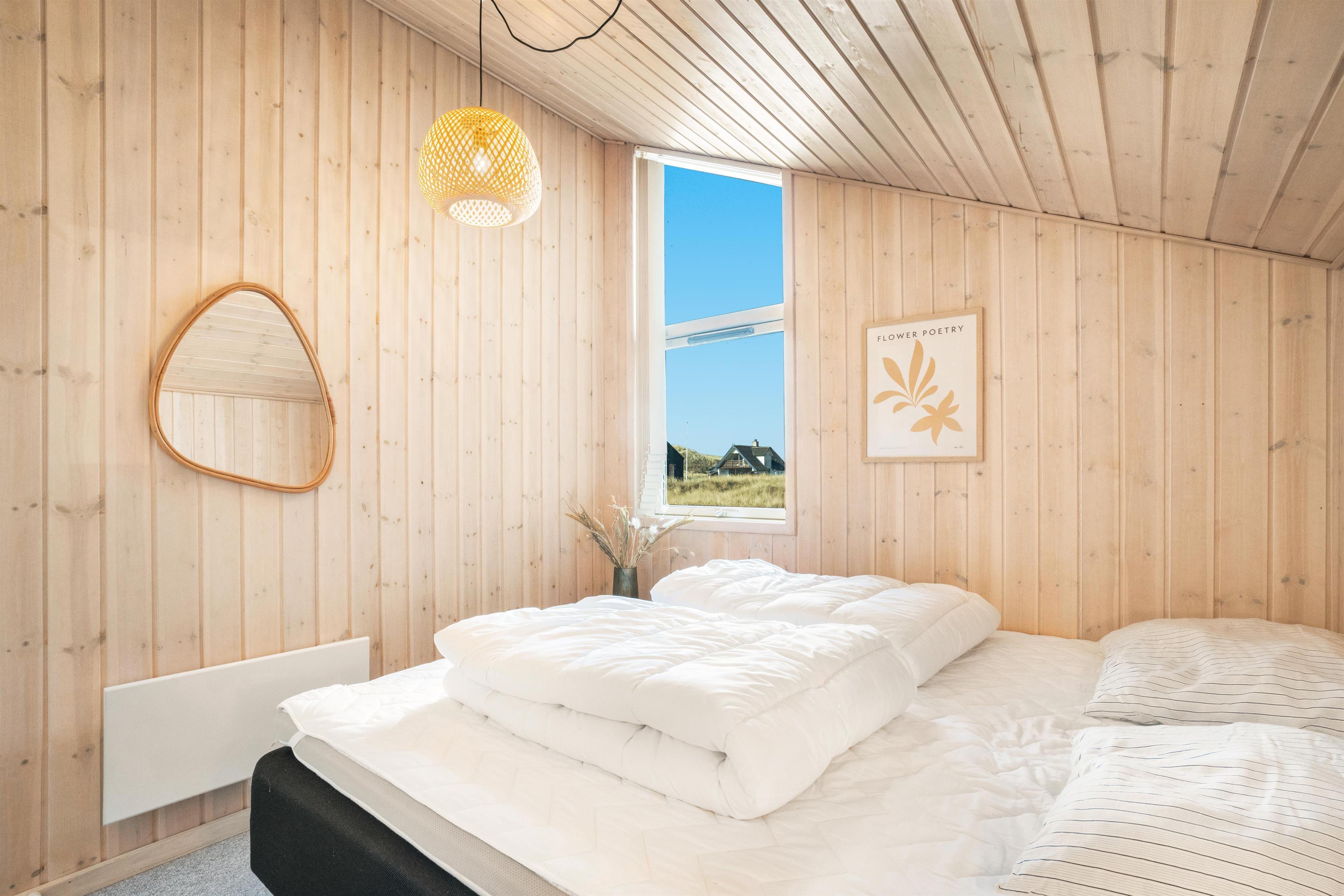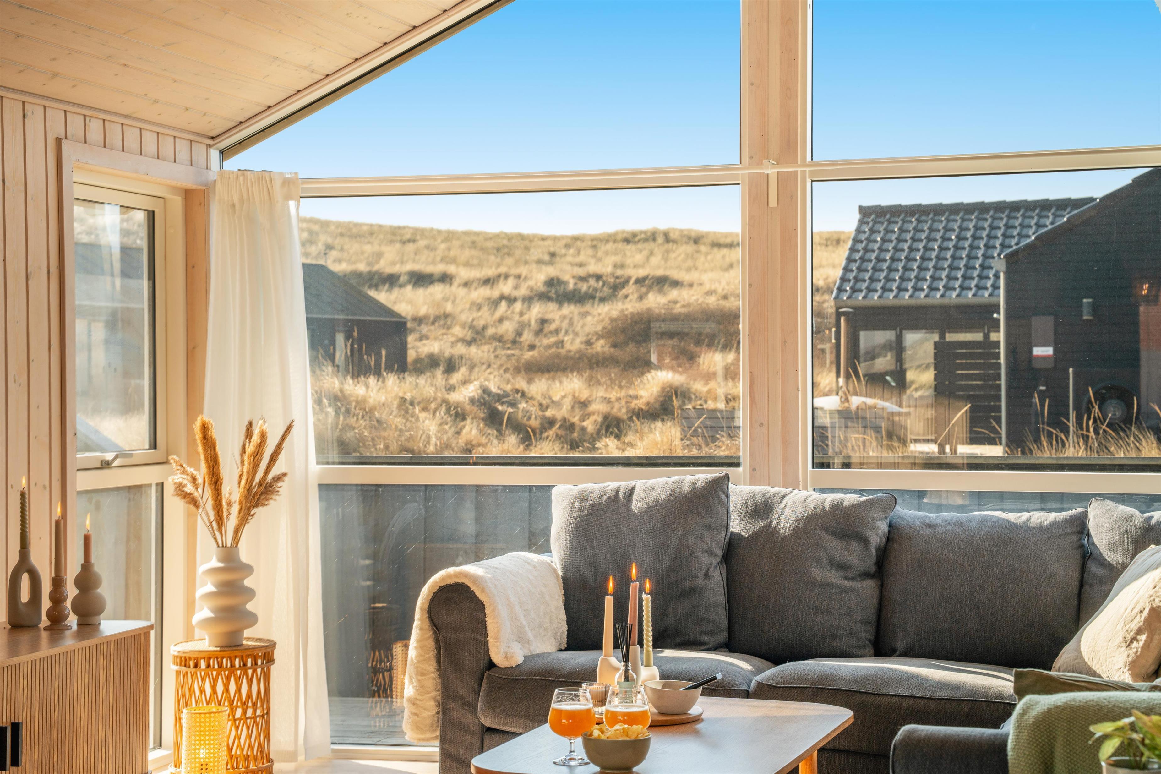 Huset rummer op til seks personer og en hund, fordelt på tre gode værelser, og har et stort, åbent fællesrum med store panoramavinduer mod vest. Her kan I nyde udsigten over klitterne dagen lang.