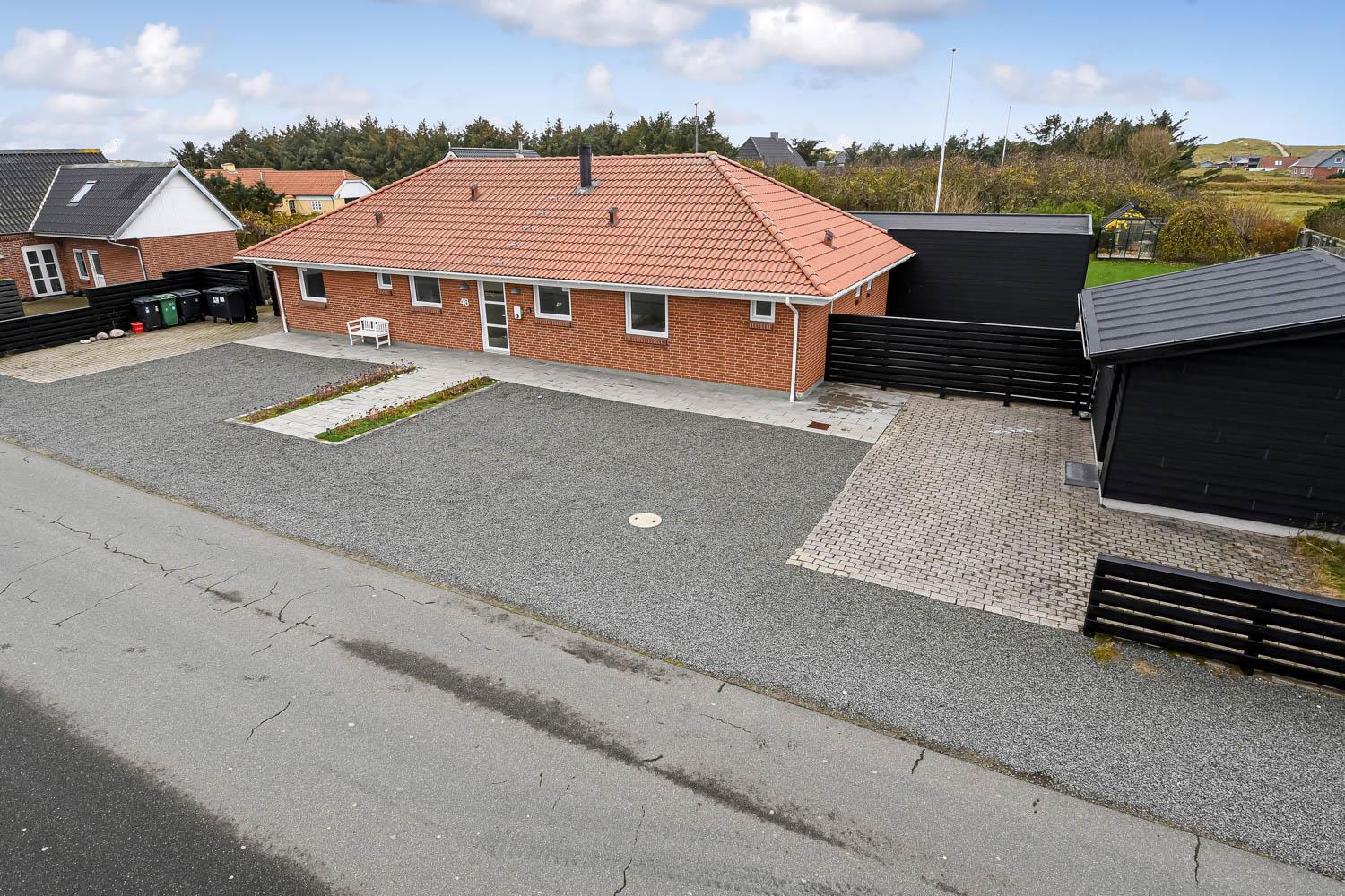 Feriehus på 240 m2. Huset er bygget i 1997 – men er i 2022 blevet totalt istandsat. Huset er minimalistisk i sit udtryk, praktisk indrettet og holdt i lyse, venlige og indbydense farver og materialer. Stor Entrè med vaskemaskine, tørretumbler og indbyggede skabe med loft til gulv låger byder velkommen. Fra entréen åbenbarer der sig et flot kombineret spisestue- og køkkenhjørne med gulvvarme. Helt nyt og indbydende køkkenhjørne med alt i service og køkkengrej, opvaskemaskine, keramiske kogeplader, indbygningsovn, emhætte Køle- / fryseskab, mikroovn. I køkkenafdelingen er der også en helt ny brændeovn ligesom den første af huset i alt 3 varmepumper hænger. Alt sammen optimeringer som gør huset særdeles energioptimeret og billigt i forbrug. En forlængelse af køkkenet er det store spisebord praktisk placeret, hvor der er rigeligt plads til alle gæster. Opholdsstuen med, nye lækre lædermøbler, Smart-TV med danske og tyske programmer samt mulighed for streaming af TV / radio / Apps via Chromecast. I huset er der 6 gode soverum med gode nye senge (1DS, 1DS, 1DS, 1DS, 1DS+1ES, 1DS+1ES). Flotte og lækre badeværelser med klinkegulv med gulvvarme, toilet, håndvask og bruser. Ekstra badeværelse med klinkegulv med gulvvarme, toilet, håndvask og bruser. Ikke ryger hus. Max 1 husdyr tilladt.