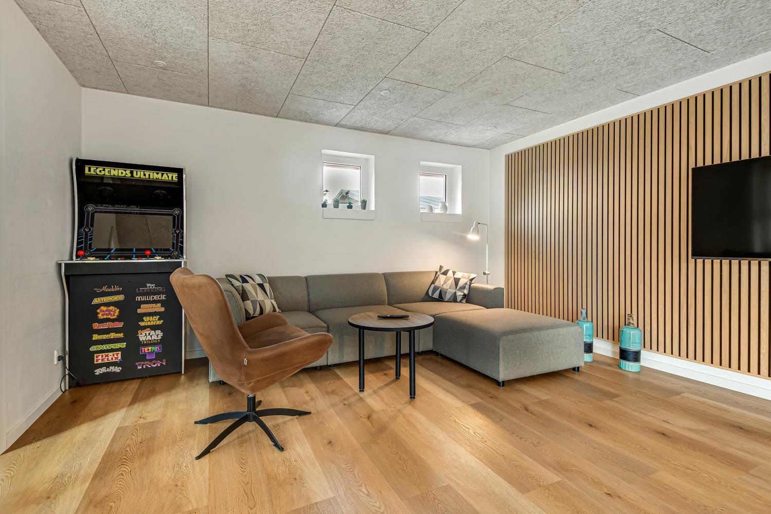 Husets store garage er lavet om til det perfekte aktivitetsrum. Rummet er isoleret og har sin egen varmepumpe. Aktivitetsrummet indeholder shuffleboard, dart, bordfodbold, bobspil, air hockey og TV med PlayStation. Her kan man virkelig få mange timer til at gå.
