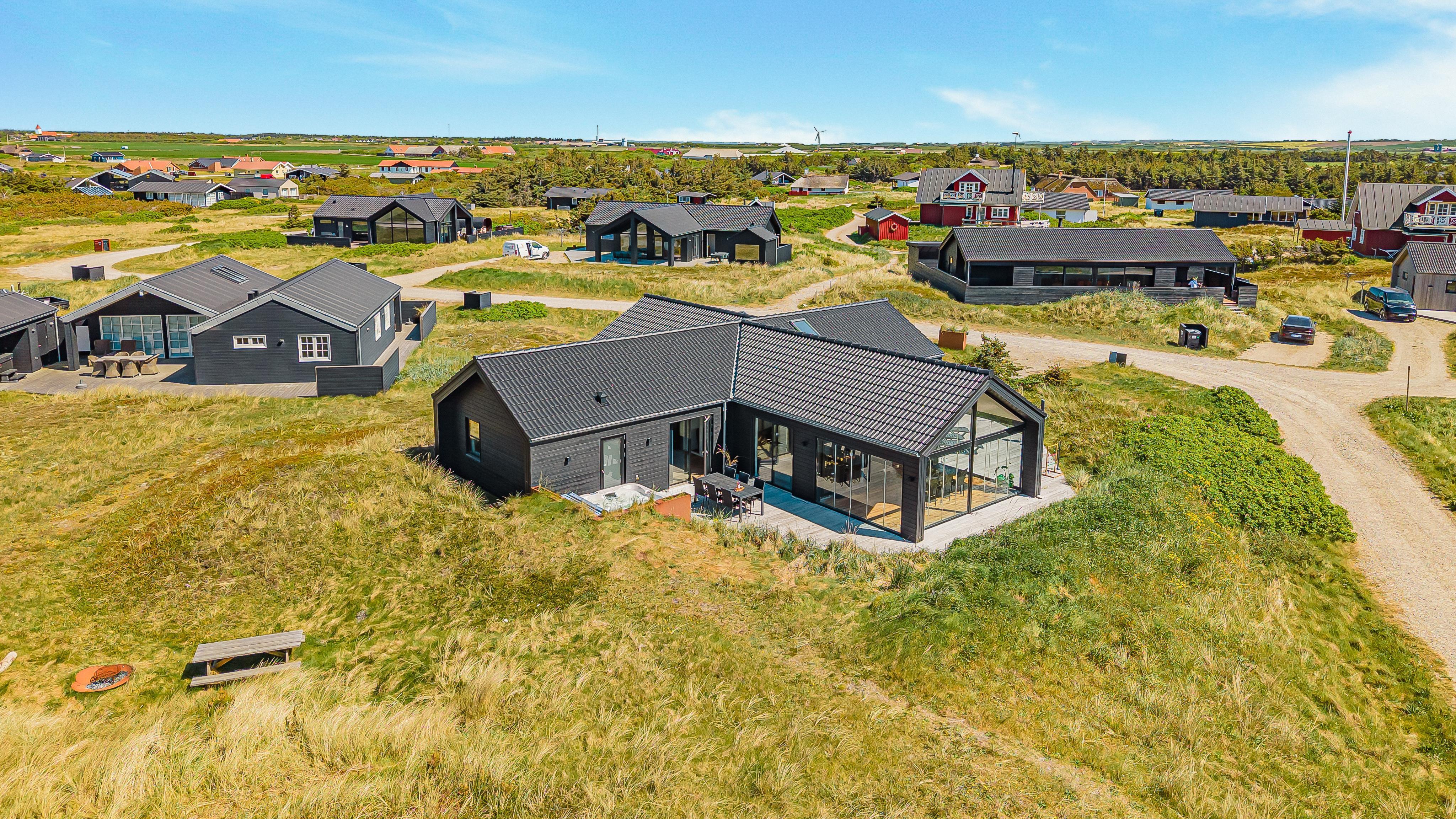 Udelivet er en central del af ferieoplevelsen i dette hus, og det store terrasseanlæg er indrettet med både åbne og overdækkede områder, så man altid kan finde sol eller læ – alt efter vejret. Et af højdepunkterne er den udendørs spa, som kan nydes både om dagen med udsigt til klitterne og om aftenen under stjernehimlen – en helt særlig oplevelse, der inviterer til ren afslapning og velvære. Her kan man virkelig mærke, hvordan både krop og sind finder ro.