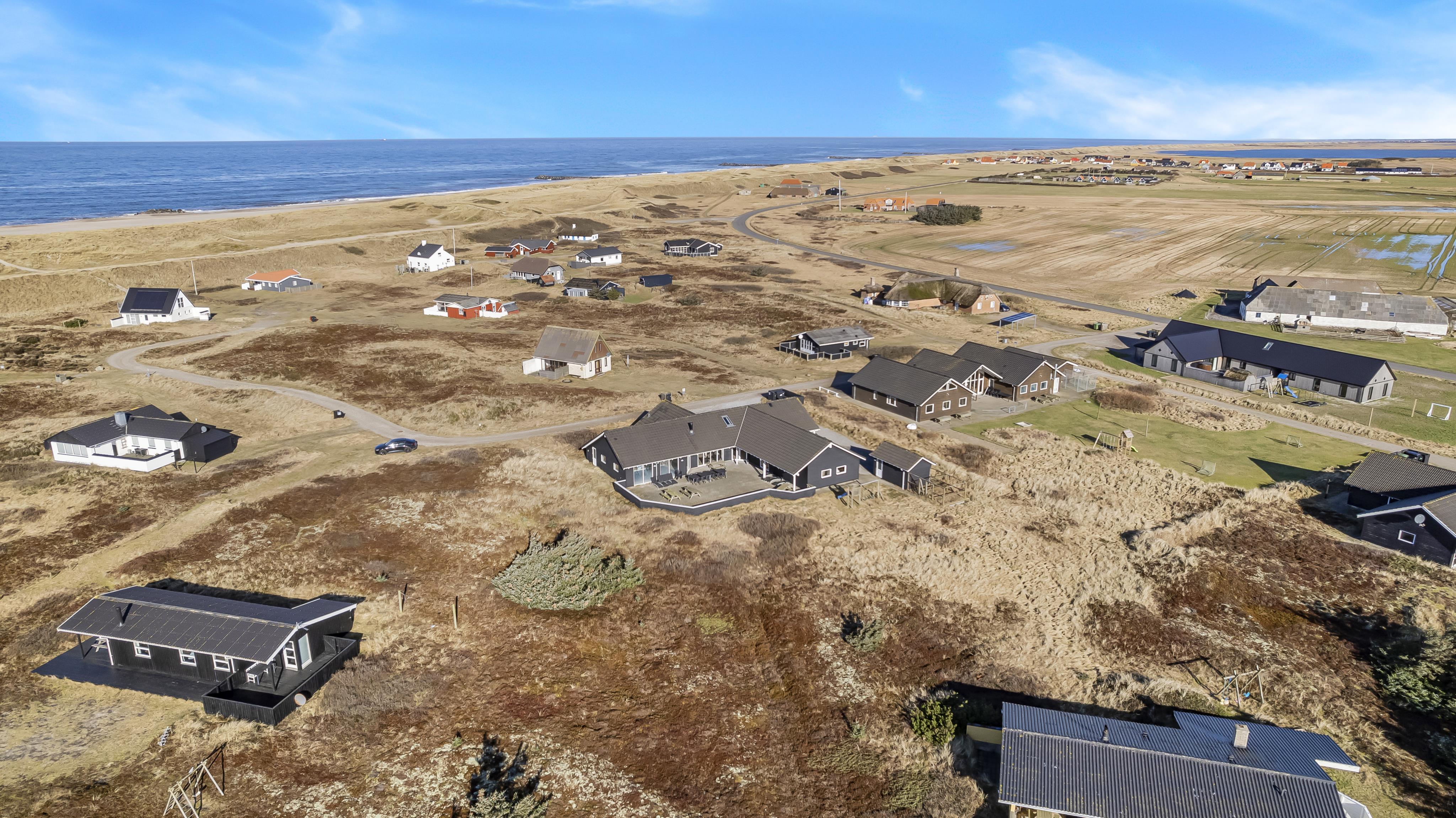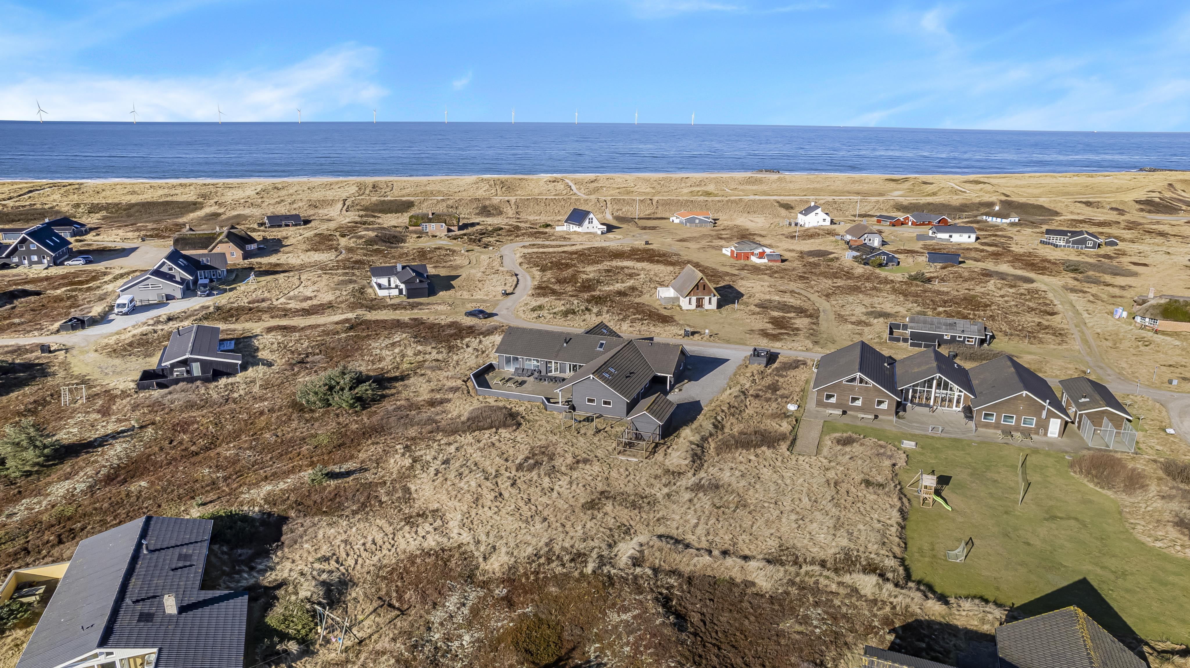 Feriehuset er beliggende på en 2.600 m2 stor klitgrund kun 150 meter fra Vesterhavet. Stor, indhegnet, delvis overdækket terrasse med gode havemøbler, solvogne og 2 x grill. Ideelt for både børn og husdyr. Nyd solen, hinanden eller en god grillaften. Gå en tur med hunden i det rolige feriehusområde, henover de høje klitter og straks derefter åbenbarer Vesterhavet sig. Et besøg værd på alle årstider. Har I været på fisketur eller blot købt fisk, med hjem tilbyder huset også fiskerenseplads. På den store grund er der gynger til børnene. Huset ligger 1000 meter fra dagligvarebutikker. Indenfor kort køre afstand nås både den aktive handelsby i Lemvi med flere specialbutikker eller den unikke fiskerby Thyborøn som udover den aktive fiskerihavn også byder på badestrand og op til flere aktivitetstilbud, som alle er et besøg værd.