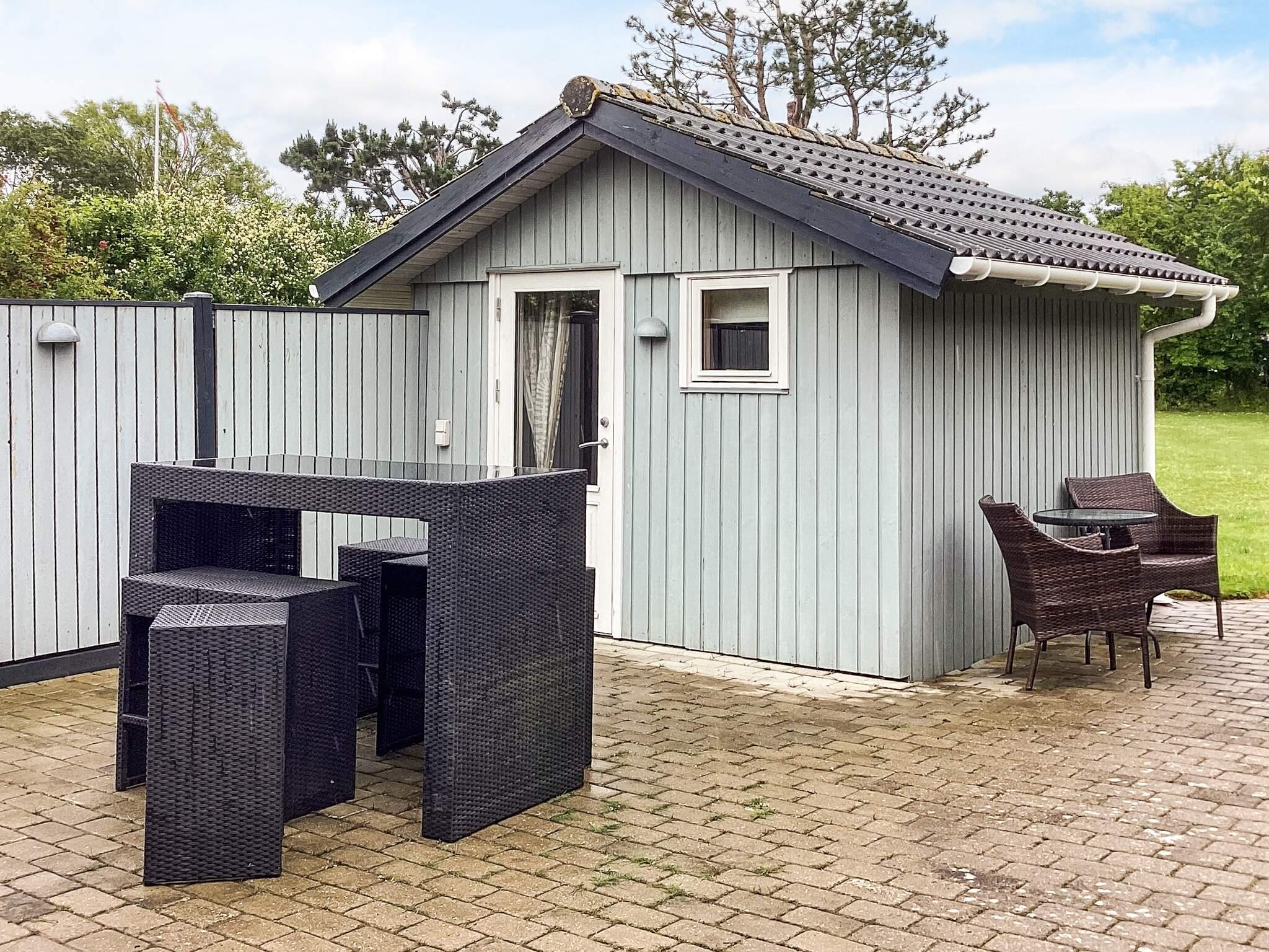 Sommerhuset er beliggende på en 1.800 m² stor grund, der giver rig mulighed for leg og leg samt solbadning. For de mindste gæster er der en stor gynge i haven, og for større børn og voksne er der dart. På terrassen er der en kulgrill, så du kan nyde aftenen efter en tur til den nærliggende strand.