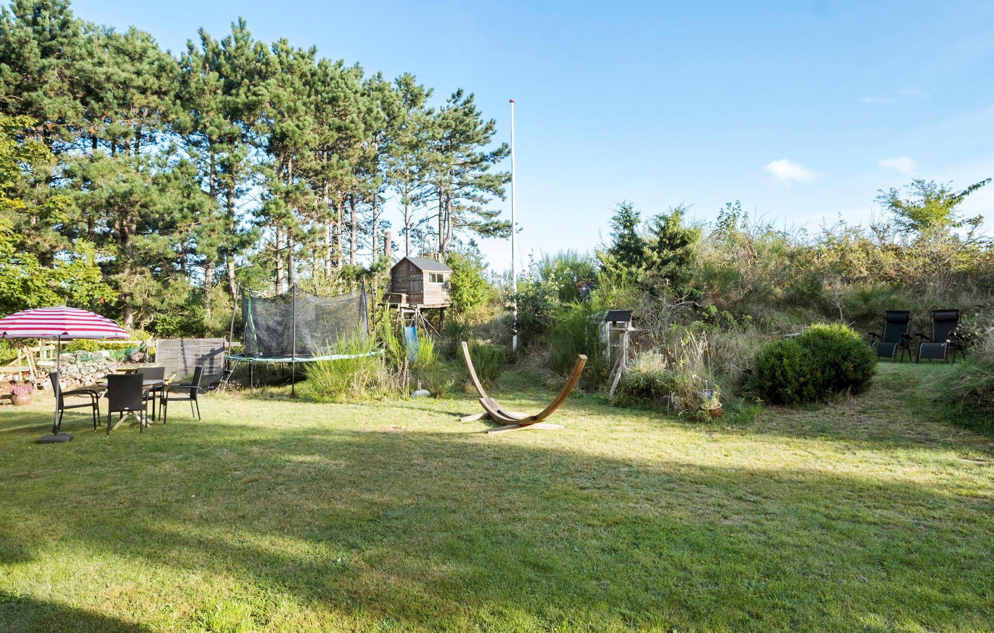 Hyggeligt feriehus ved Yderby Lyng strand med terrasse, petanque og trampolin for hele familien.