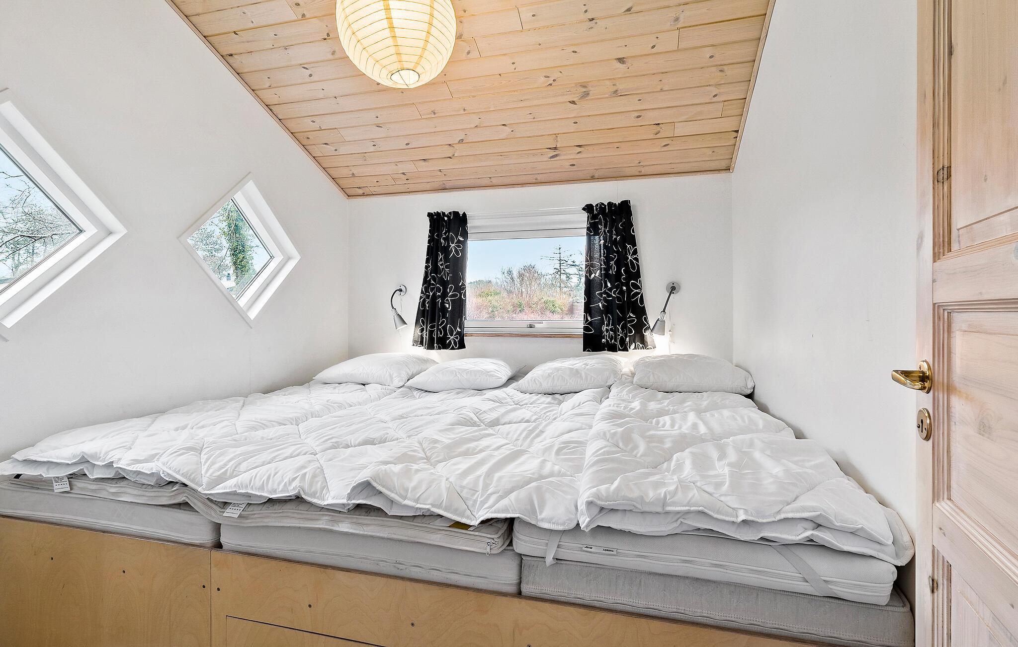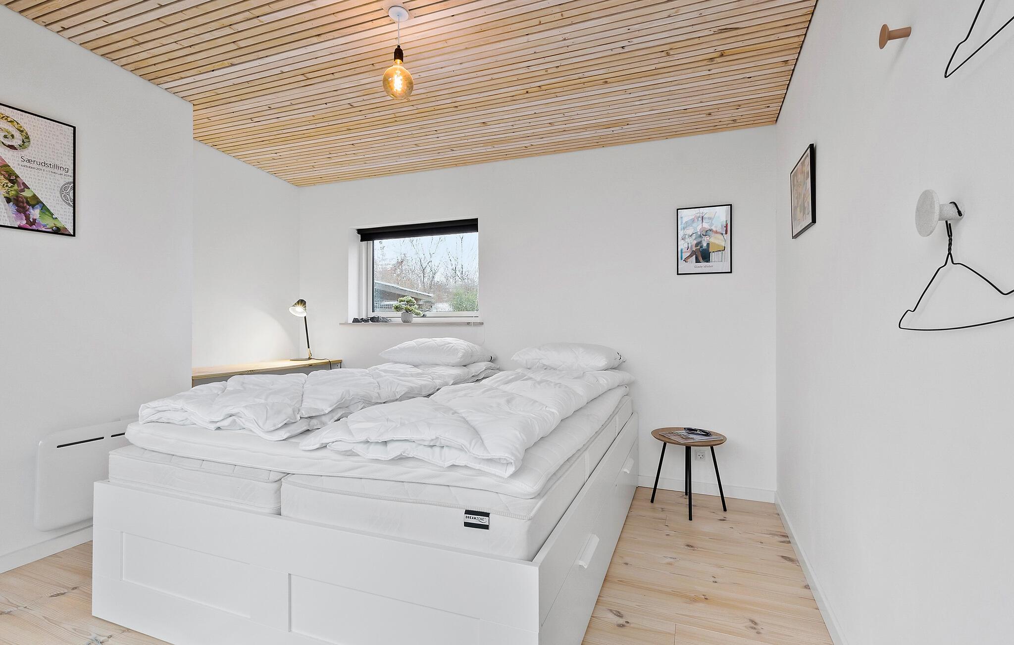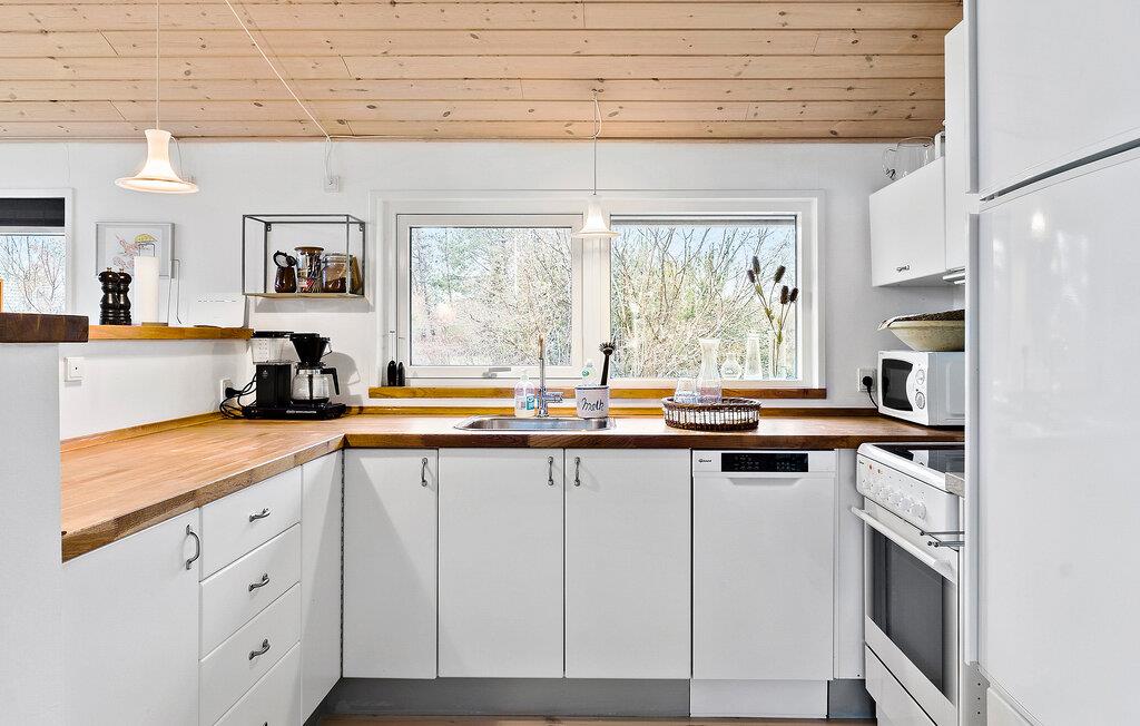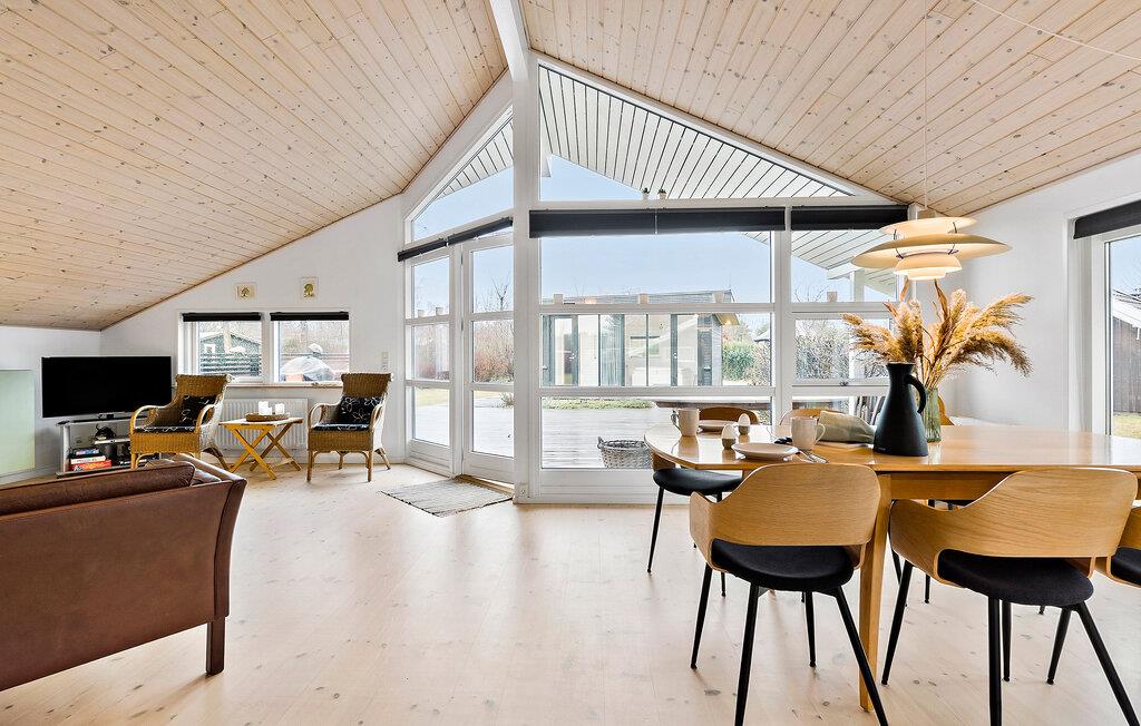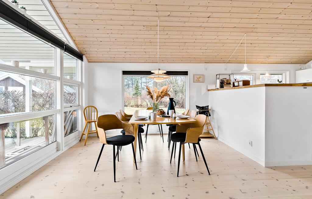 Lad turen gå til Yderby Lyng Strand med familien, hvor I kan glæde jer til denne perle af et feriehus,der ikke lader noget tilbage at ønske. Indretningen fremtræder lyst og lækkert med en åben planløsning, og opholdsrummet får et dejligt lysindfald gennem gulv-til-loft-vinduerne. Her står den på klassisk feriehygge med god tid til madlavningen, puslespil ved spisebordet og ren afslapning i de behagelige møbler ved brændeovnen.