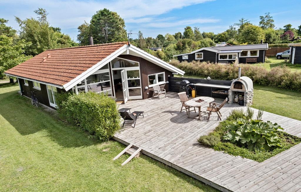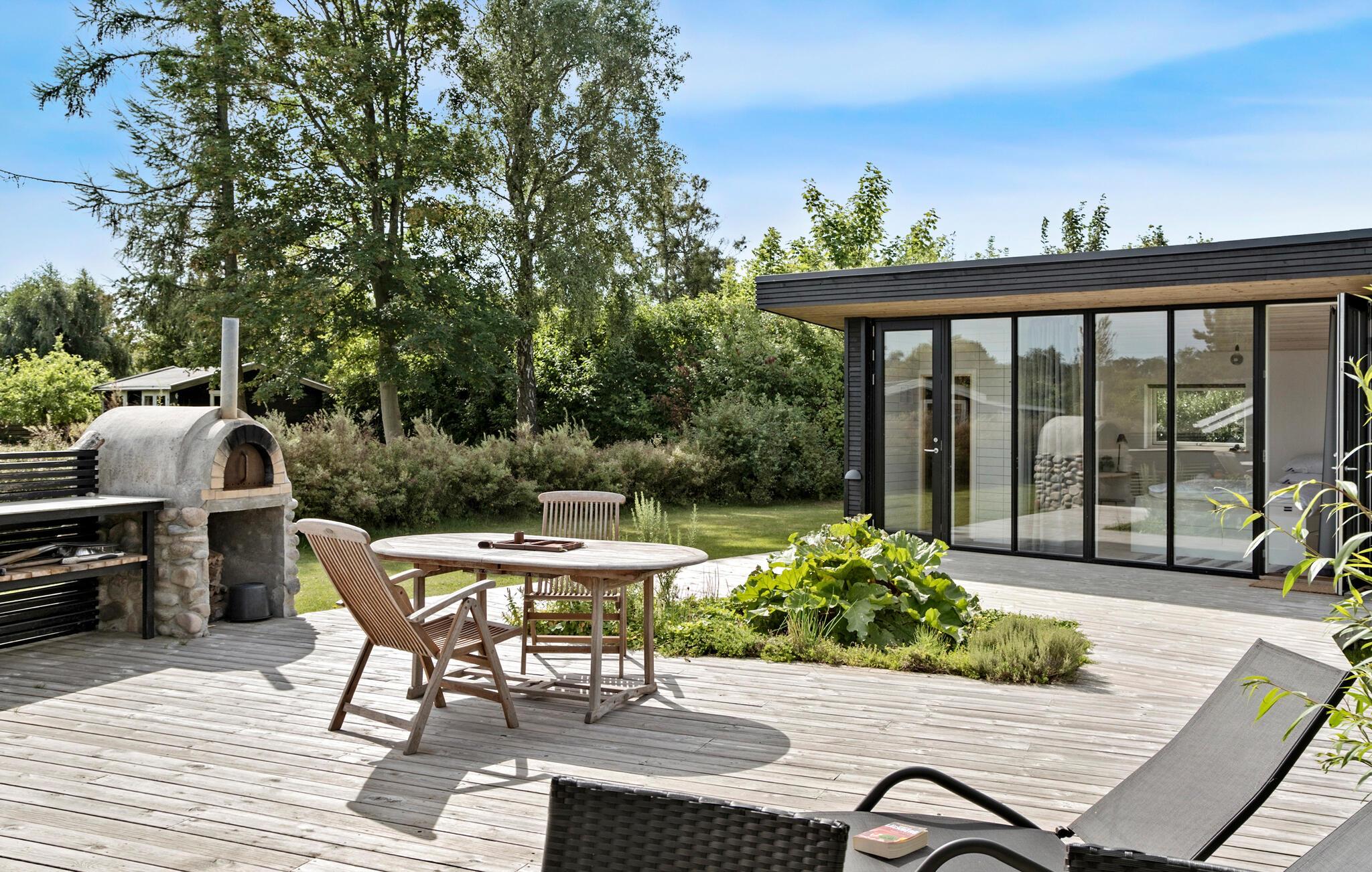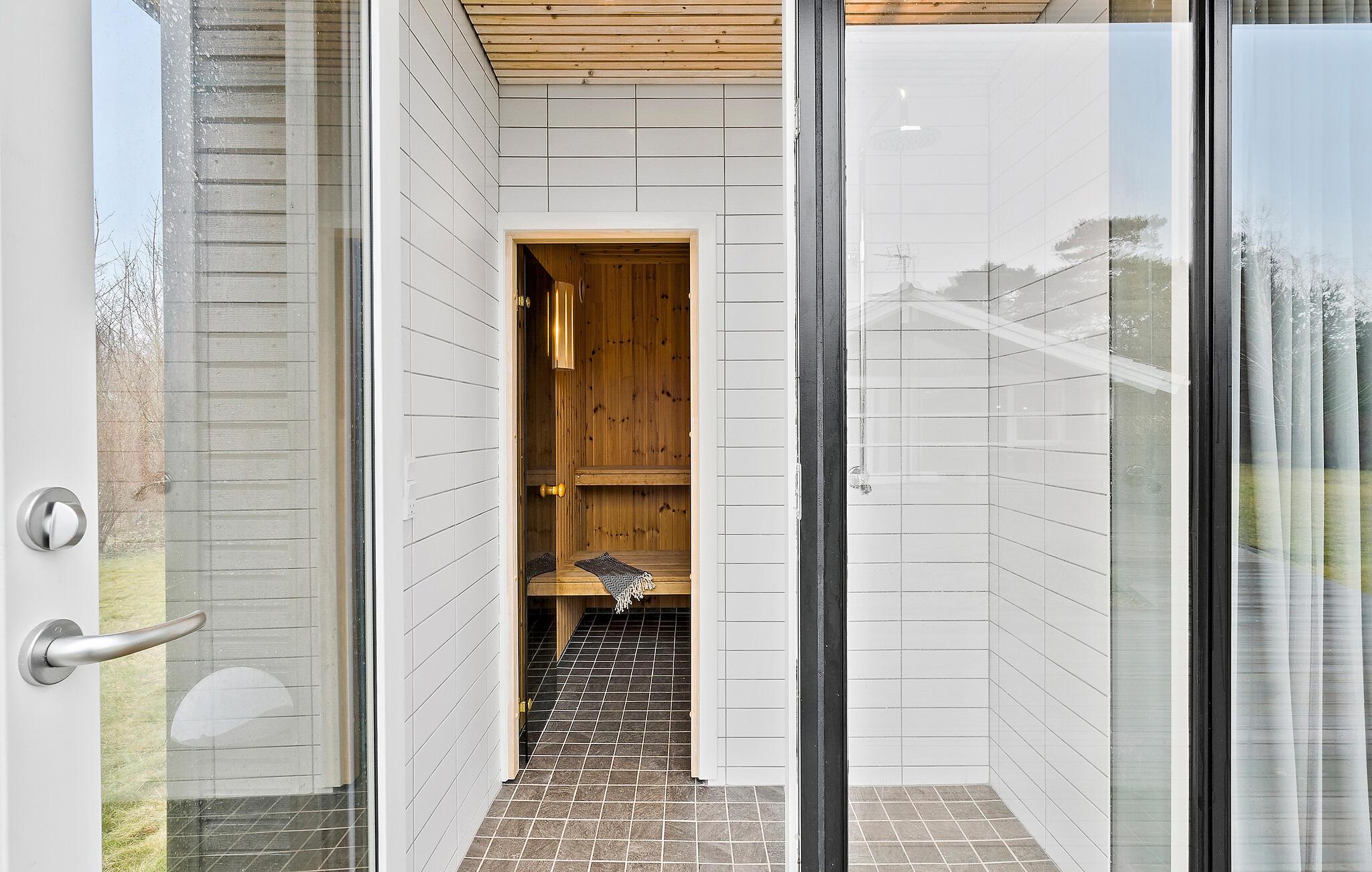 Prikken over i'et er den moderne wellness-hytte, som er forbundet med hovedhuset via træterrassen. Her kan I svede hverdagens bekymringer helt ud af kroppen, inden I lader en dejlig feriedag gå på hæld med jeres livretter fra grillen og et køligt glas vin.
